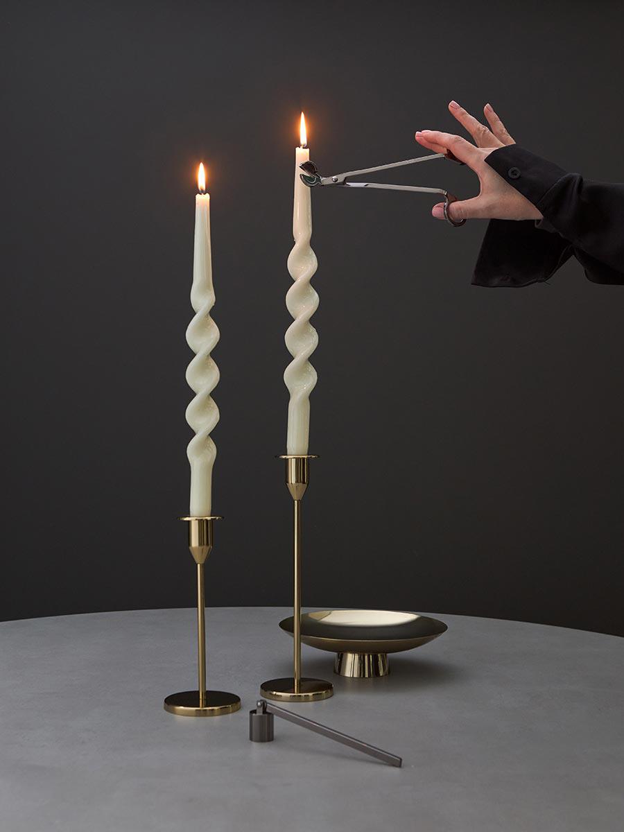 Набор аксессуаров для свечей из коллекции Essential создан для ценителей уюта и атмосферного освещения. В комплект входят ножницы для подрезания фитиля и специальный гаситель, который помогает безопасно погасить пламя без дыма и искр. Особенности и преимущества: - Гаситель имеет специальную конструкцию, что позволяет быстро потушить пламя, без риска обжечься и разбрызгать горячий воск. - Ножницы позволяют легко подрезать фитиль до оптимальной длины – это обеспечивает более чистое горение и продлевает срок службы свечи. - Аксессуары выполнены из нержавеющей стали, благодаря чему устойчивы к воздействию высоких температур и долго сохраняют привлекательный вид. Материал: нержавеющая сталь. Размеры ножниц: 18,3х2,1х3,2 см, диаметр ручки - 0,4 см. Размеры пламягасителя: 19,2х2,2х3,7 см, диаметр колпачка: 2,2 см, диаметр ручки 0,4 см. Цвет: графит. От загрязнений можно очищать при помощи мягкого влажного материала. Запрещается использование абразивов и агрессивной бытовой химии.