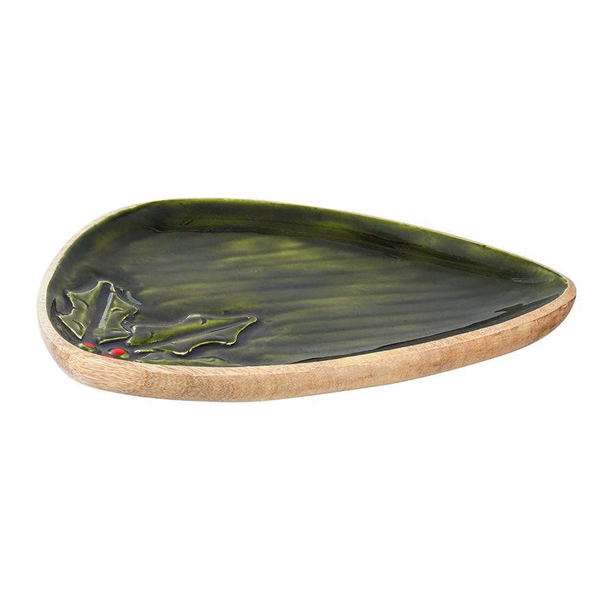 Оригинальный декоративный поднос Christmas symbol из коллекции New Year Essential станет изысканным дополнением к сервировке праздничного стола или одним из стильных элементов декора каминной полки, тумбы, барной стойки. Благодаря эффектному дизайну органично впишется в концепцию современного интерьера кухни, гостиной, столовой. Особенности и преимущества: - Поднос выполнен из натуральной древесины – экологически чистого и долговечного материала. - Поверхность изделия покрыта эмалью, которая не скрывает привлекательную текстуру дерева, при этом надежно защищает его от негативного воздействия влаги, ультрафиолетового излучения. - Благодаря продуманному дизайну и цвету поднос хорошо вписывается в разные современные интерьеры и варианты повседневной или праздничной сервировки. - Компактные размеры позволяют разместить поднос на каминной или книжной полке, тумбе, столе. Материалы: манговое дерево, эмаль. Размеры: 30х20х2,5 см. Цвет: зеленый. Пыль и загрязнения удалять при помощи мягкой салфетки. Запрещается использование агрессивной бытовой химии и абразивных материалов.