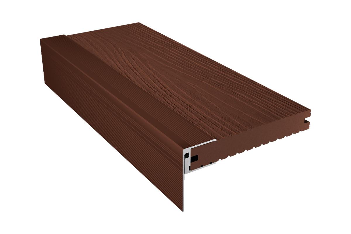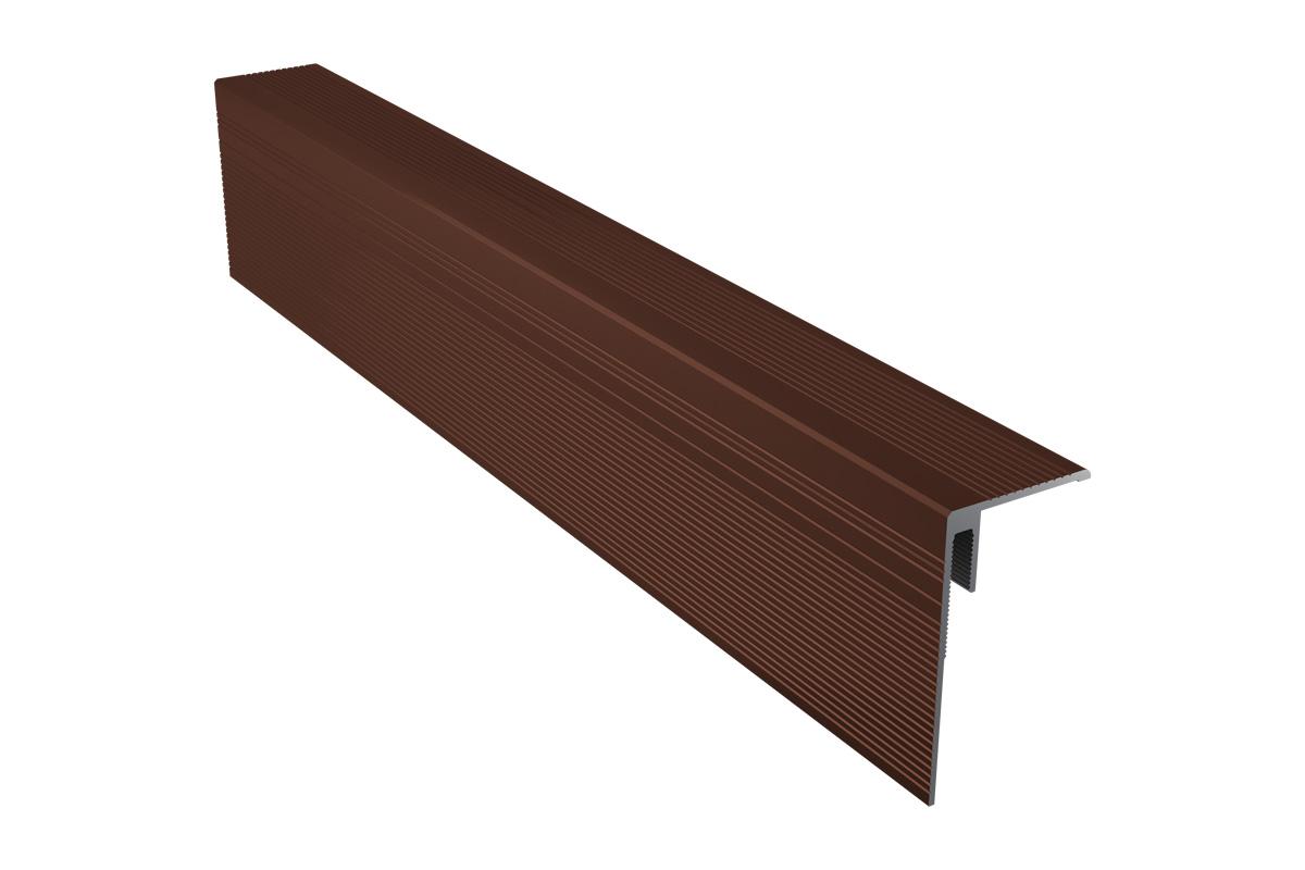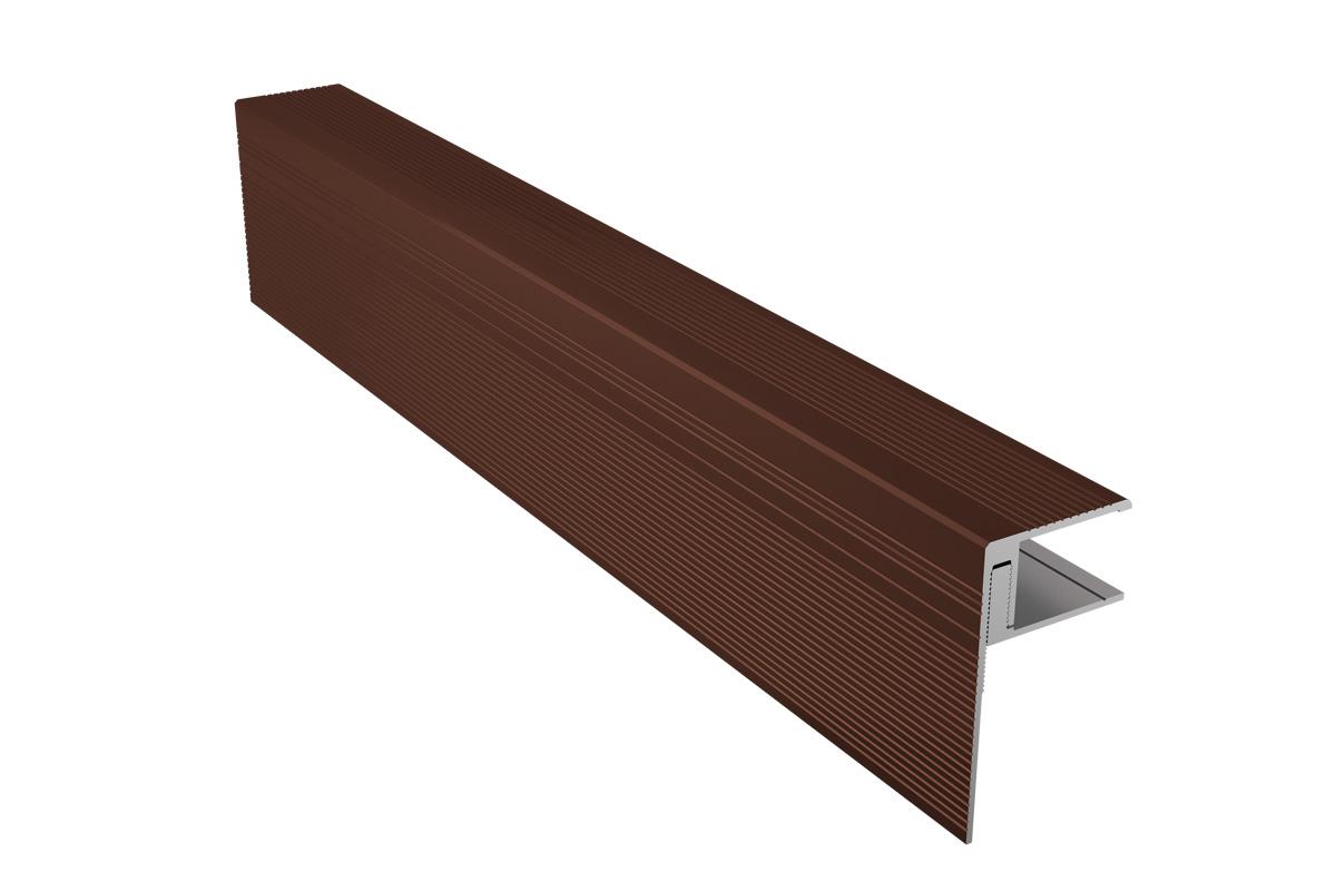 Выполненный из алюминия F-профиль предназначен для финишной отделки террасного покрытия. Данный элемент придаст законченный вид настилу и позволит подчеркнуть эстетику выбранного покрытия.
