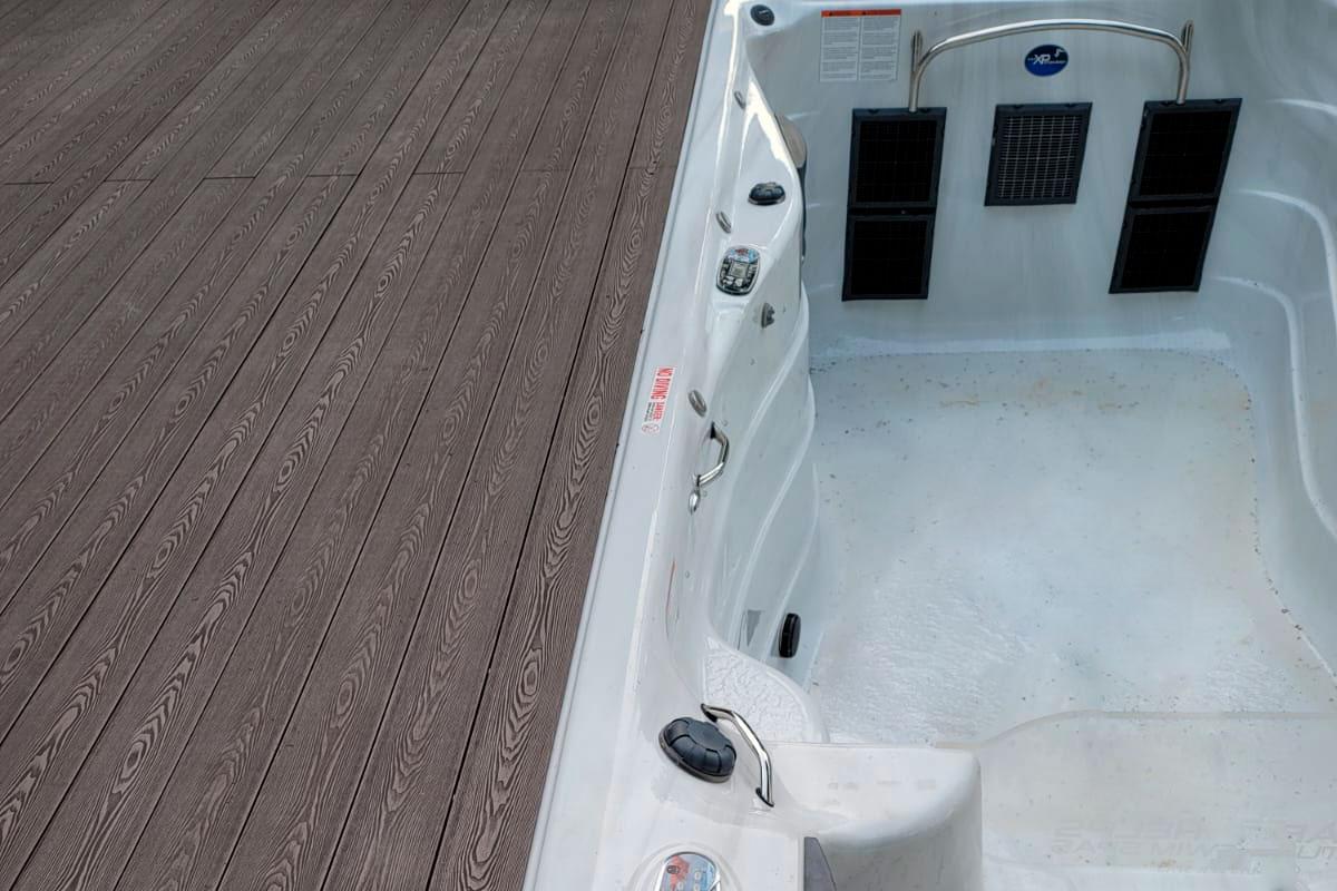 Полнотелая террасная доска выдерживает большие ударные нагрузки.Высокая прочность по сравнению с пустотелыми досками.