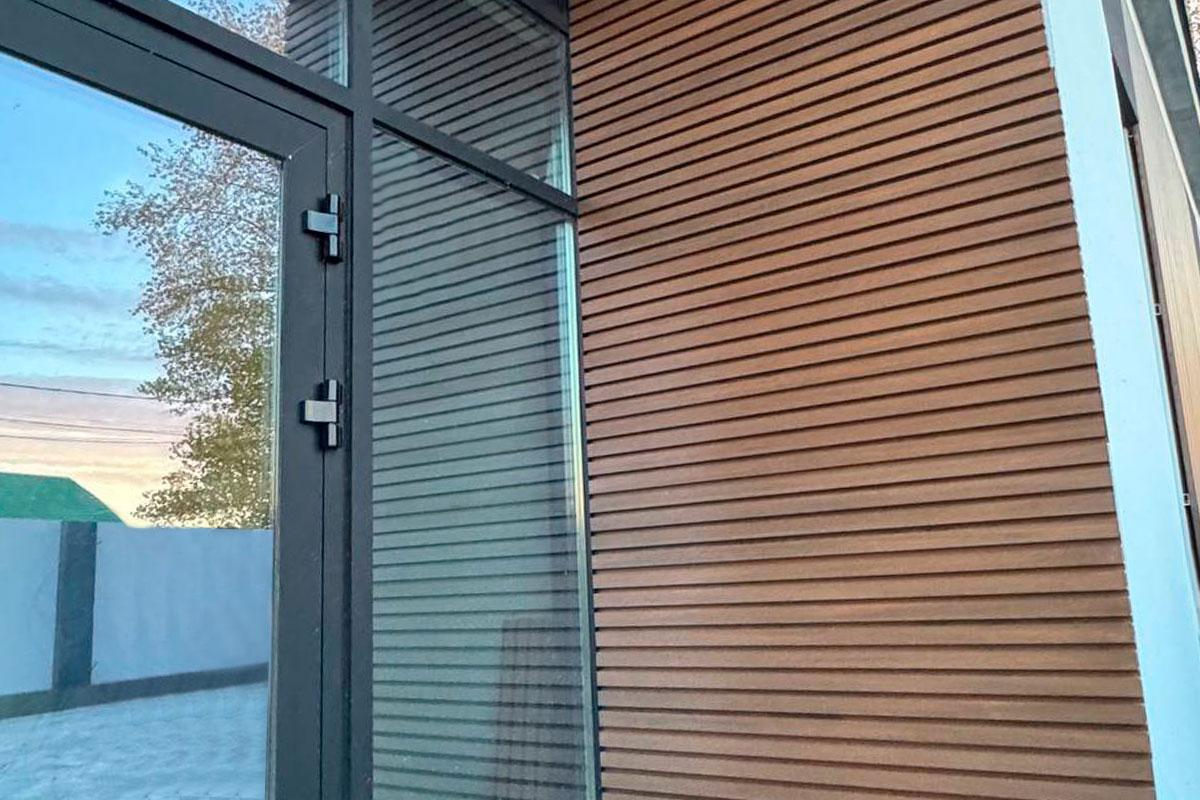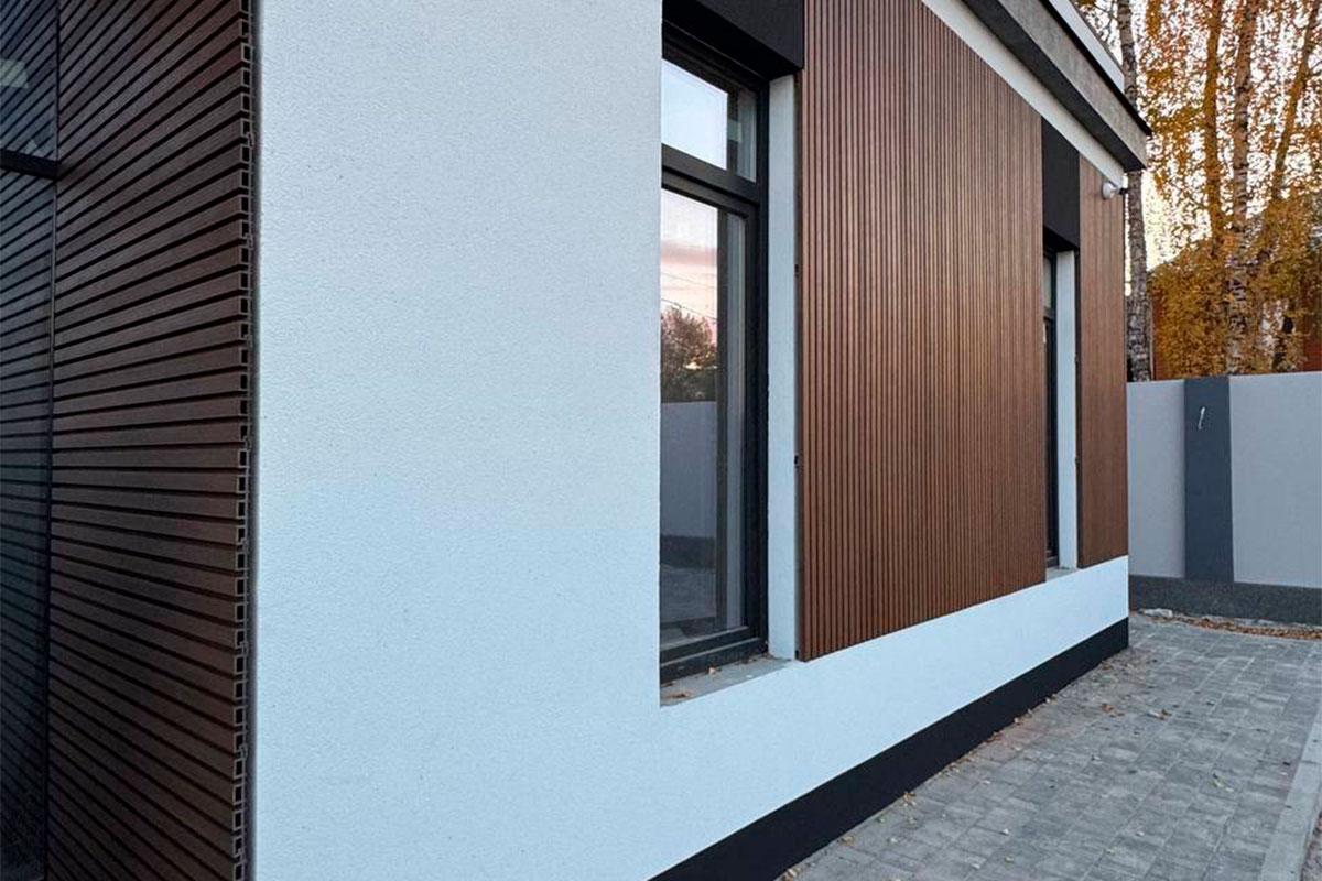 Вертикальные стеновые панели из ДПК изготовлены методом ко-экструзии.