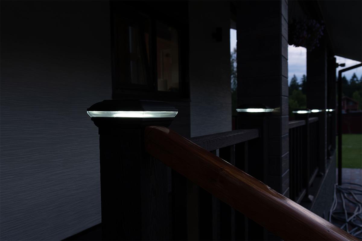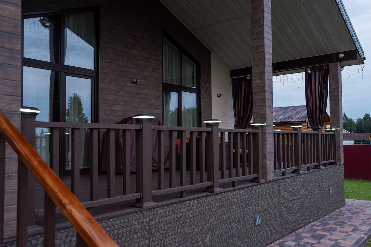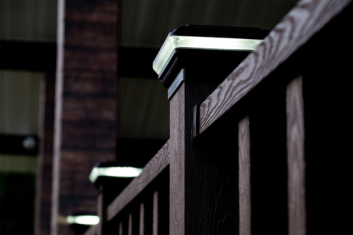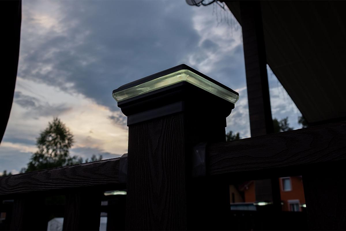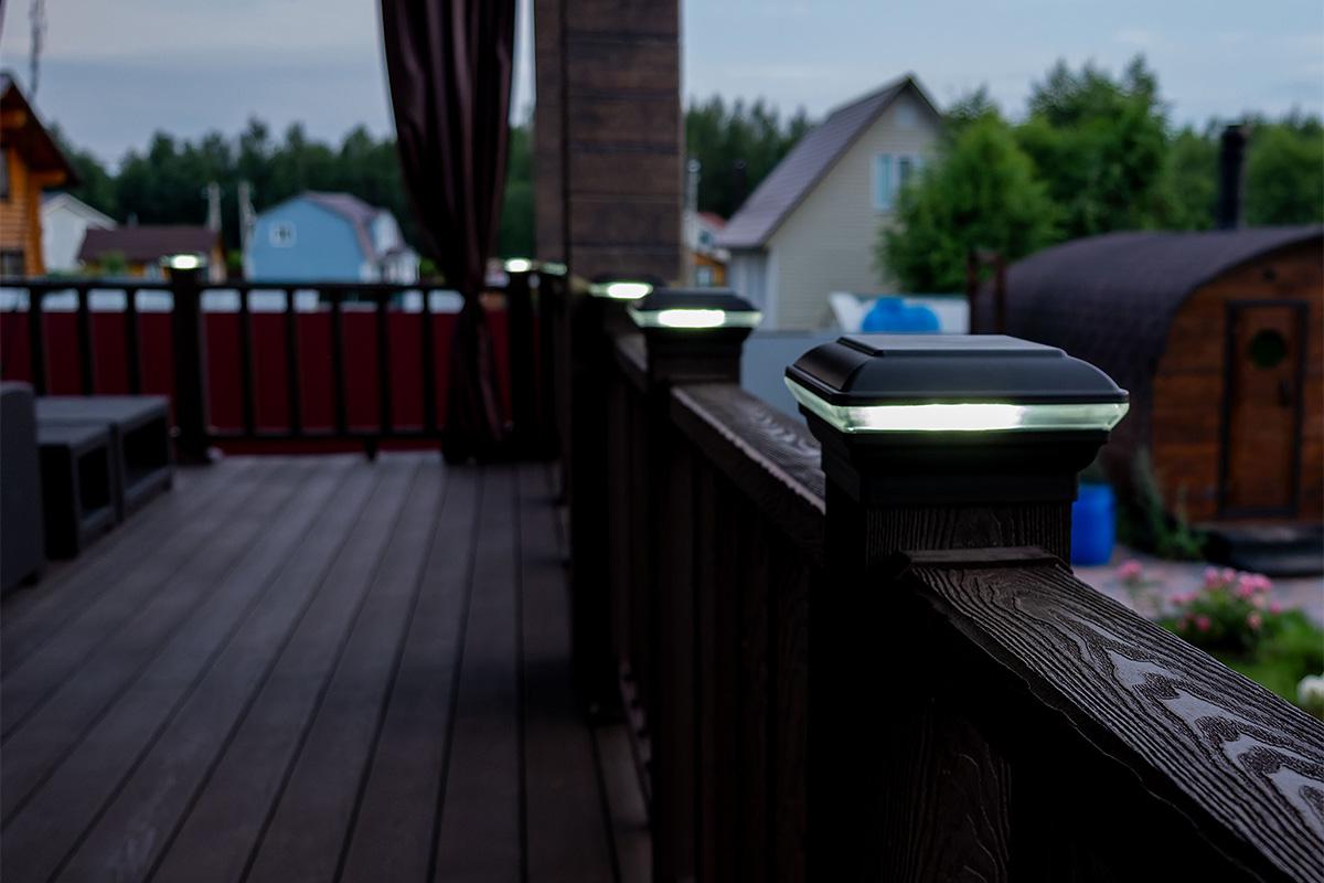 Это решение «два в одном» для вашего загородного дома, которое позволяет создать аккуратный законченный вид ограждения и равномерно провести освещение по всей территории террасы.