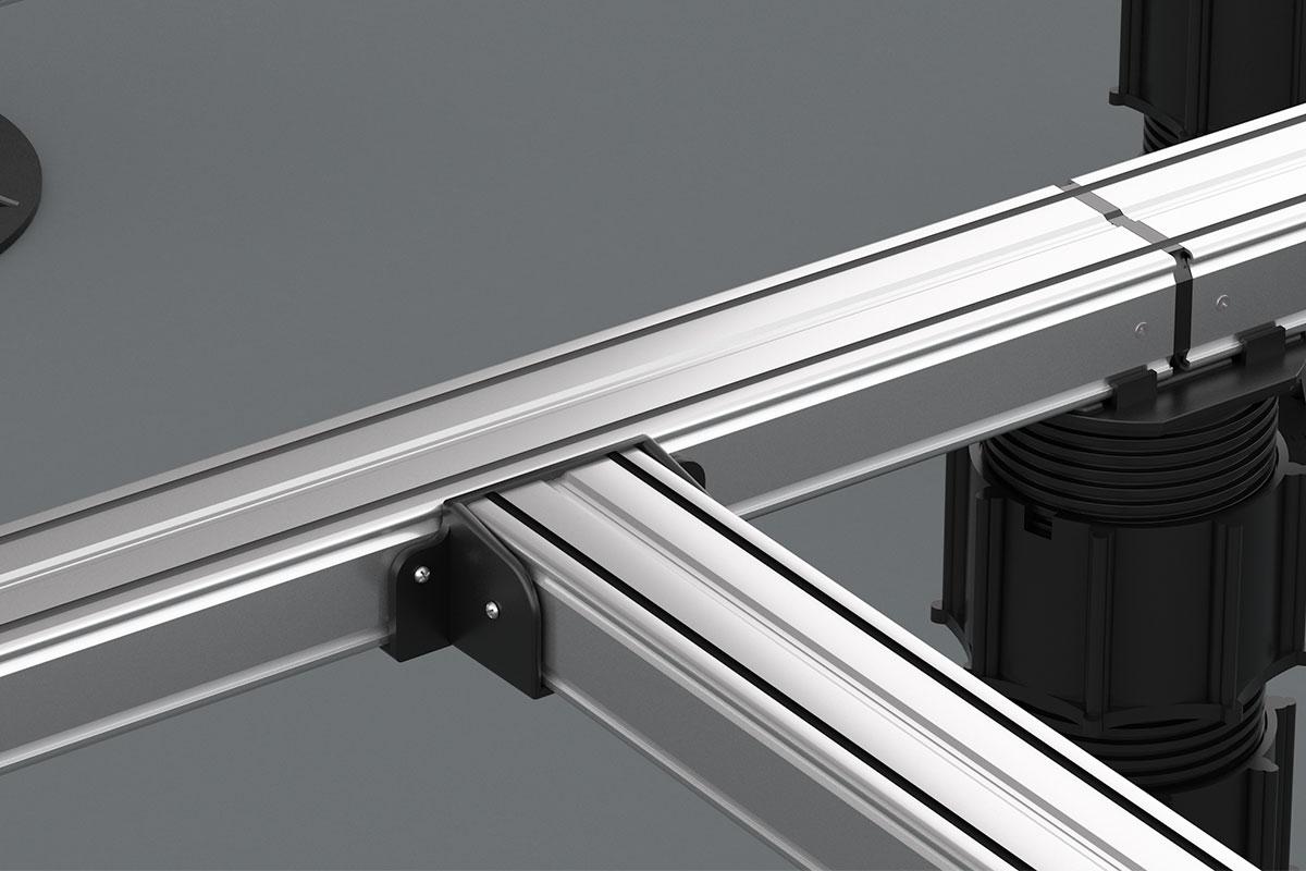 За счет применения данных соединителей, создаётся монолитная подсистема из алюминиевых лаг при использовании их на опорах любых типов (бетонные, металлические, пластиковые).