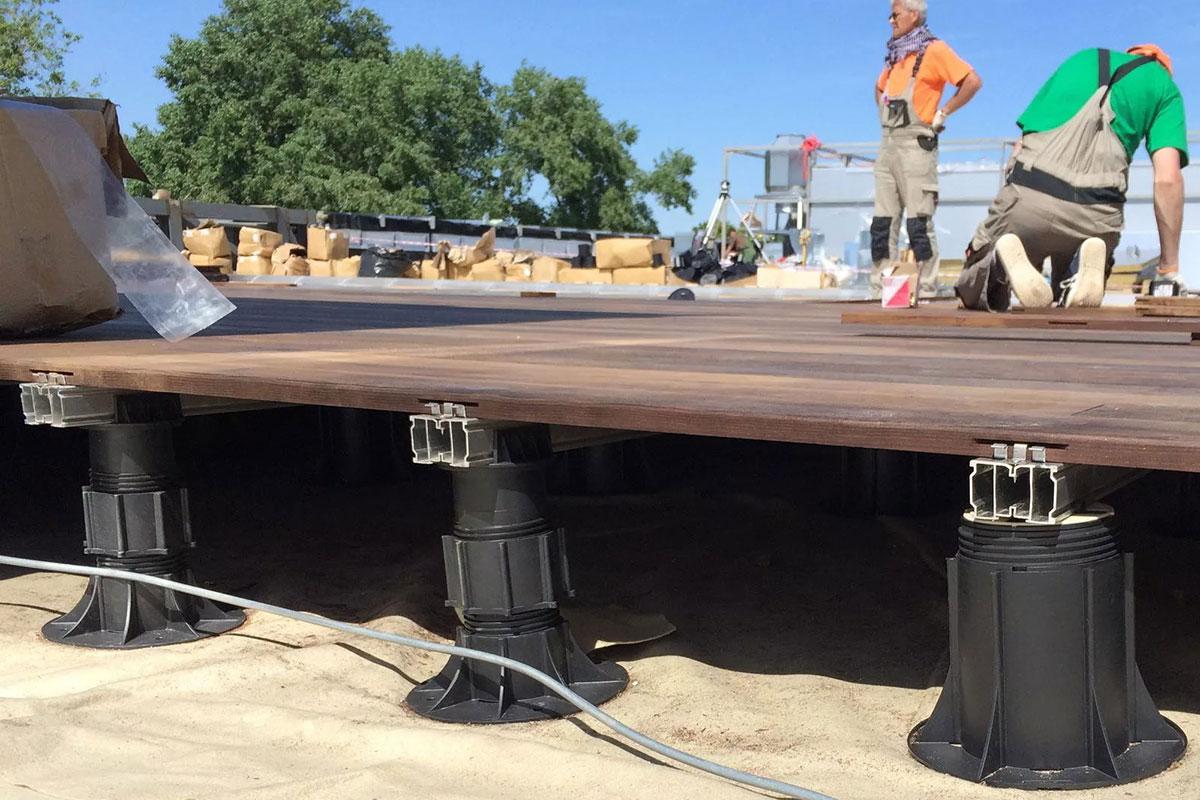 Лага и опоры (вся террасная подсистема) практически является "вечной".Неподвижность лаг, смонтированных на регулируемые опоры, при температурном расширении (плавающая лага).