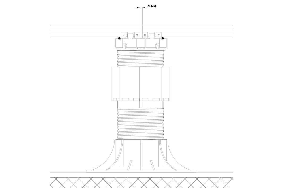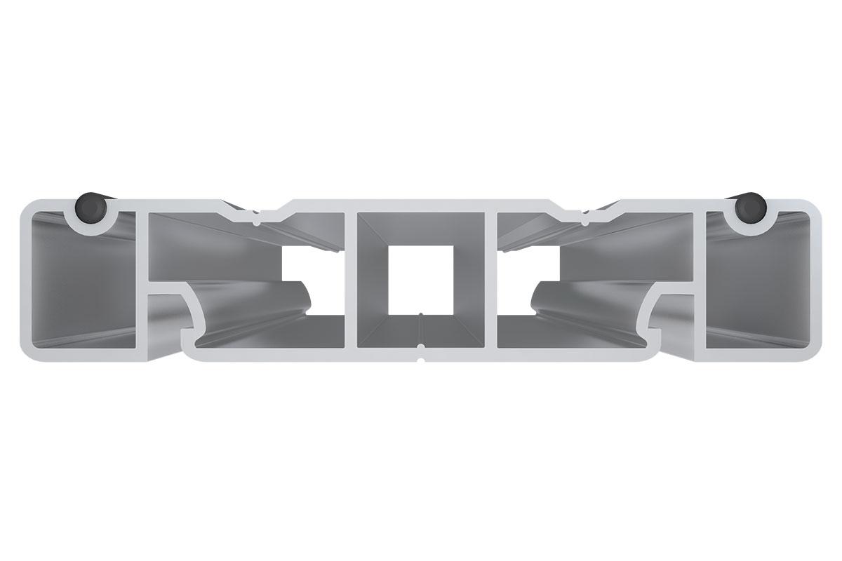 Основное преимущество лаги – ее широкая конструкция (100 мм), позволяющая надежно закрепить две доски сразу с использованием четырех кляймеров HILST FIX (в отличии от стандартных методов стыковки на двух отдельных лагах). Это обеспечивает надежную фиксацию, а также исключает люфт и скрип настила в процессе эксплуатации. Четыре ребра жесткости внутри профиля лаги обеспечивают дополнительную прочность и устойчивость к деформациям при эксплуатации настила в местах с большой проходимостью (коммерческое использование). Материал лаги – высококачественный алюминий, устойчивый к коррозии и атмосферным воздействиям, что гарантирует длительный срок службы.