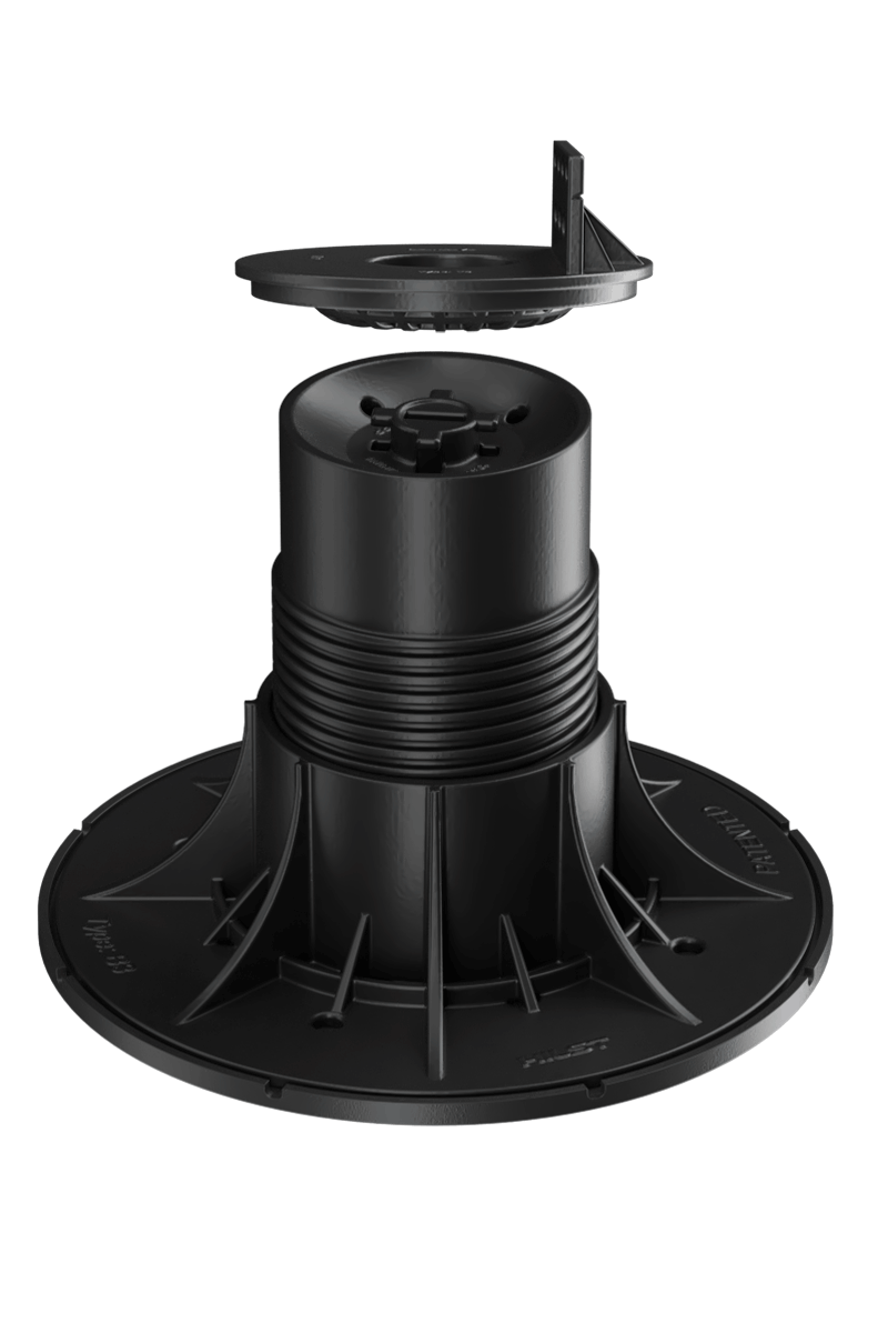 Максимально удлиненные элементы конструкции (увеличители), необходимые для создания высоких террас, усилены дополнительными внутренними и наружными ребрами жесткости, что повышает прочность на изгиб всей подсистемы.Прорезиненная вершина для плитки