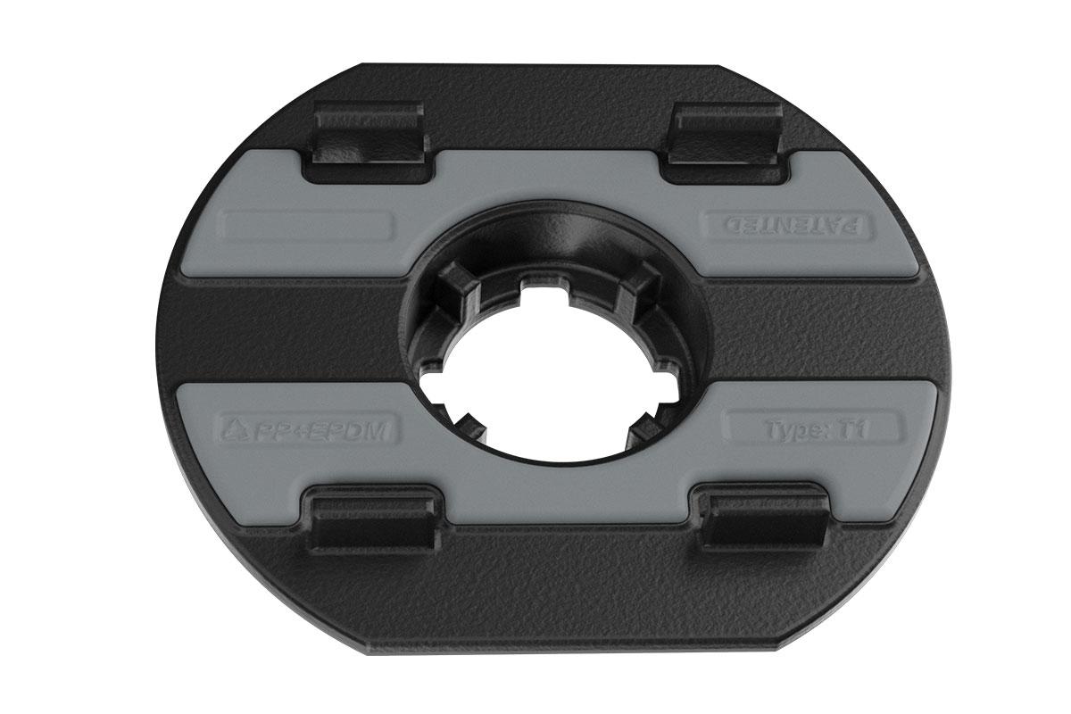 Верхняя часть опоры для лаги имеет резиновую поверхность, которая позволяет гасить вибрации в широком частотном диапазоне, которые затухают проходя разные среды (материалы) террасная доска-алюминиевая лага - резина-пластик.Фабрика Gardeck