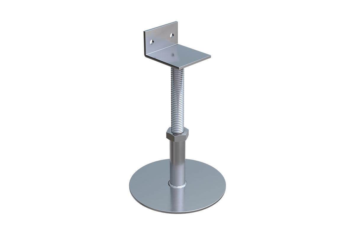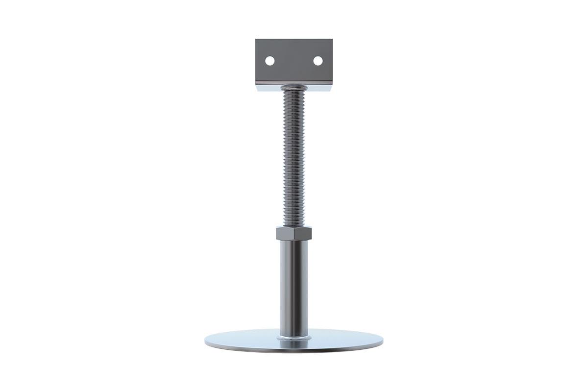 Негорючая регулируемая опора HILST для эксплуатируемой кровли и устройства внешних фальшполов вне помещения. Сделана из оцинкованного металла - фальшпол становится долговечным и прочным.Внимание! Опоры поставляются в сборе: основание с втулкой и шпилька с регулировочной гайкой и вершиной для лаги (подходят для лаг из ДПК, алюминиевых или деревянных).