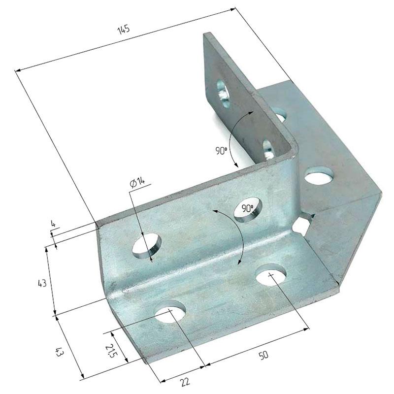 Модель - HILST Уголок 90 градусов с укосиной, 145*145*43*4мм