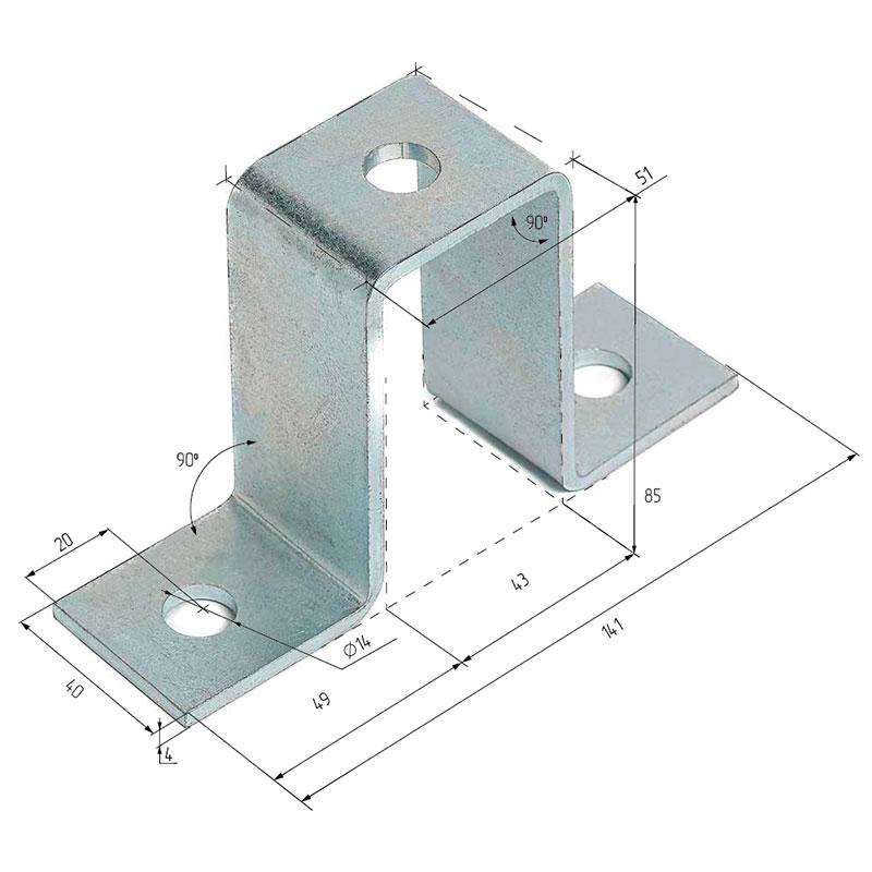 Обеспечивает устойчивое поперечное соединение двойных профилей, особенно эффективно используется скоба в создании пространственных силовых, опорных каркасов и решеток.