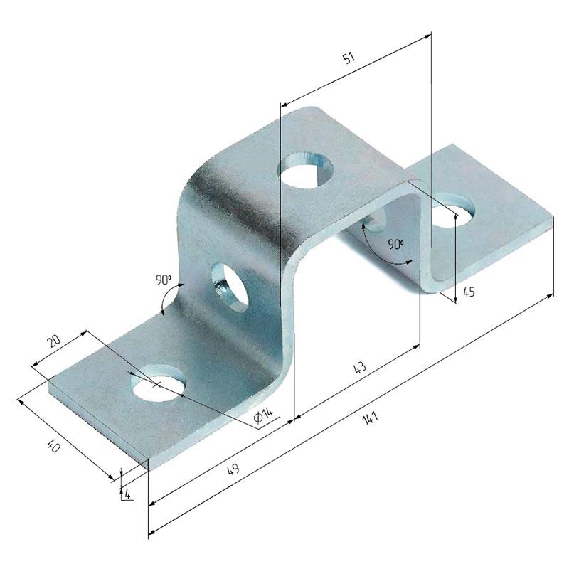 Обеспечивает устойчивое поперечное соединение двойных профилей, особенно эффективно используется скоба в создании пространственных силовых, опорных каркасов и решеток.