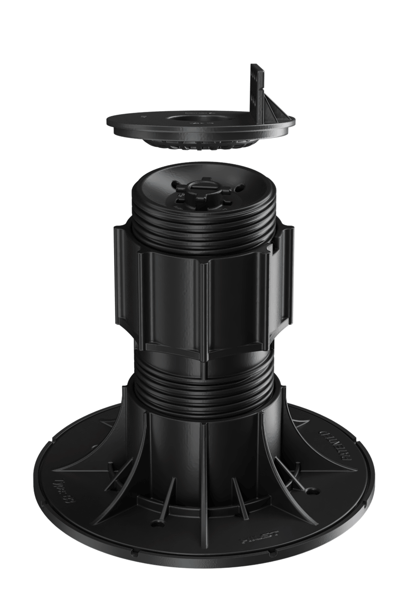 Максимально удлиненные элементы конструкции (увеличители), необходимые для создания высоких террас, усилены дополнительными внутренними и наружными ребрами жесткости, что повышает прочность на изгиб всей подсистемы.Прорезиненная вершина для плитки