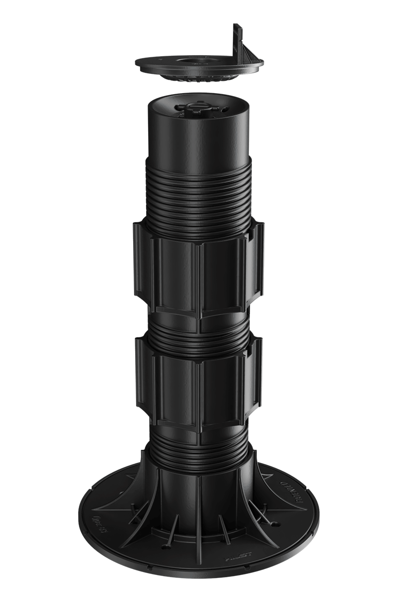 Максимально удлиненные элементы конструкции (увеличители), необходимые для создания высоких террас, усилены дополнительными внутренними и наружными ребрами жесткости, что повышает прочность на изгиб всей подсистемы.Прорезиненная вершина для плитки