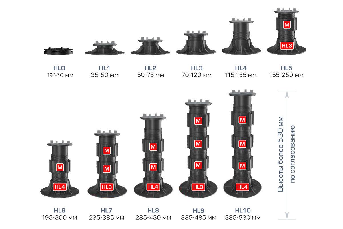 HILST LIFT - единственные опоры в России, которые имеют самый полный Альбом технических решений (материалы для проектирования и монтажа). С помощью опор возможно поднять настил на высоту от 23* до 530 мм.