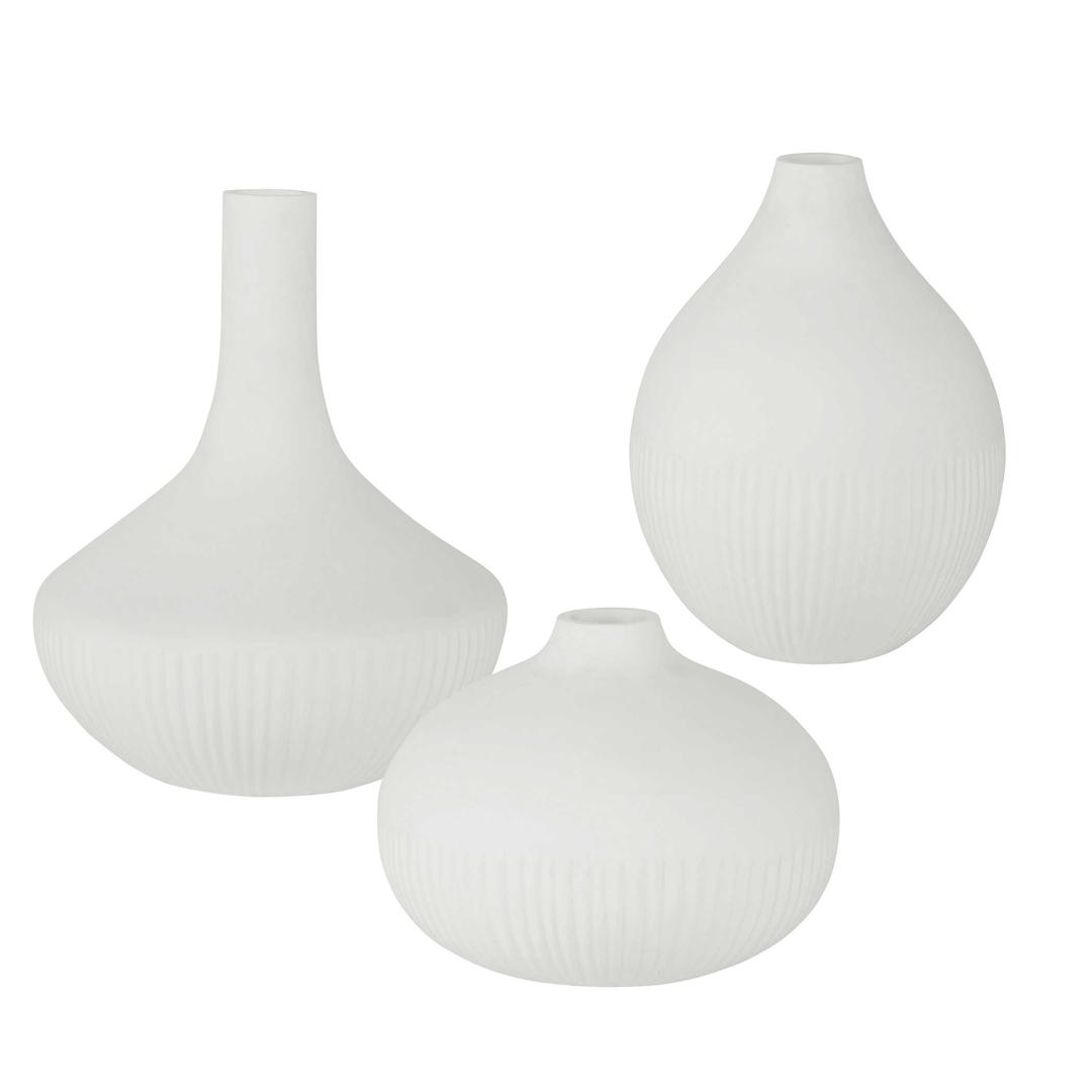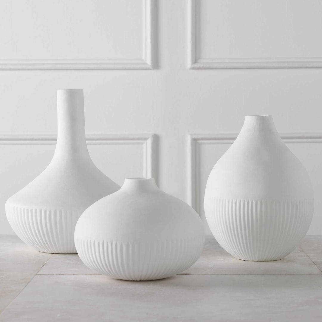 Минималистично выполненный сет из трех ваз, способен прийтись по вкусу многим. Такой сет будет прекрасно смотреться в разной обстановке - как вместе, комплектом, так и по отдельности.