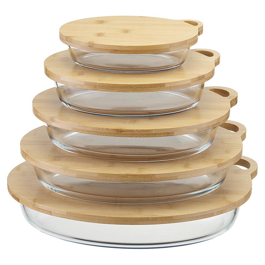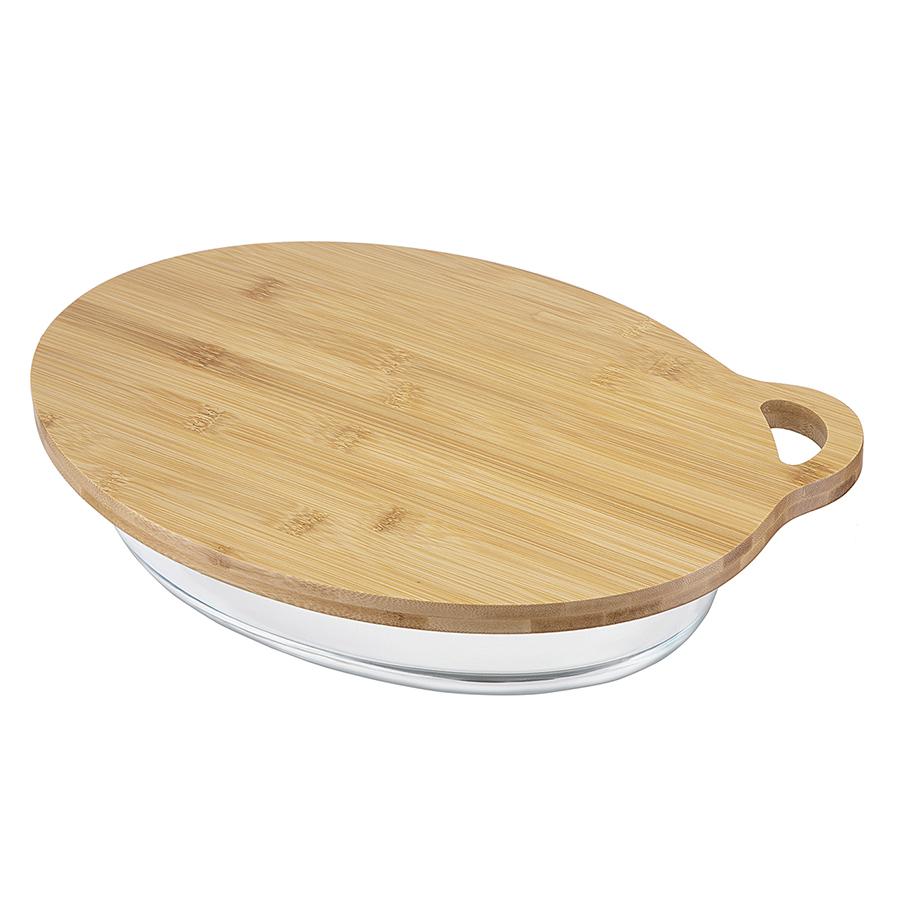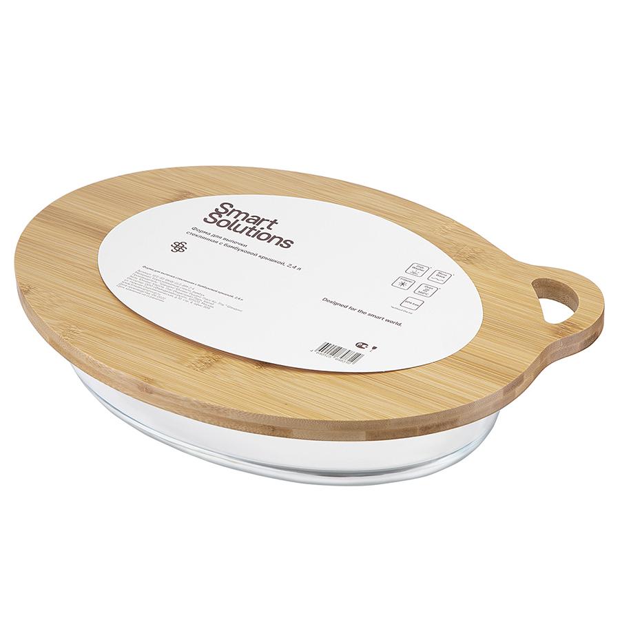 Аксессуар ЯЯЯ Форма для выпечки стеклянная с бамбуковой крышкой-подносом, 2,4 л арт. SFE-SS-BKW-GLS-BM-2.4