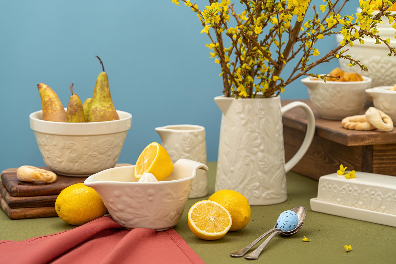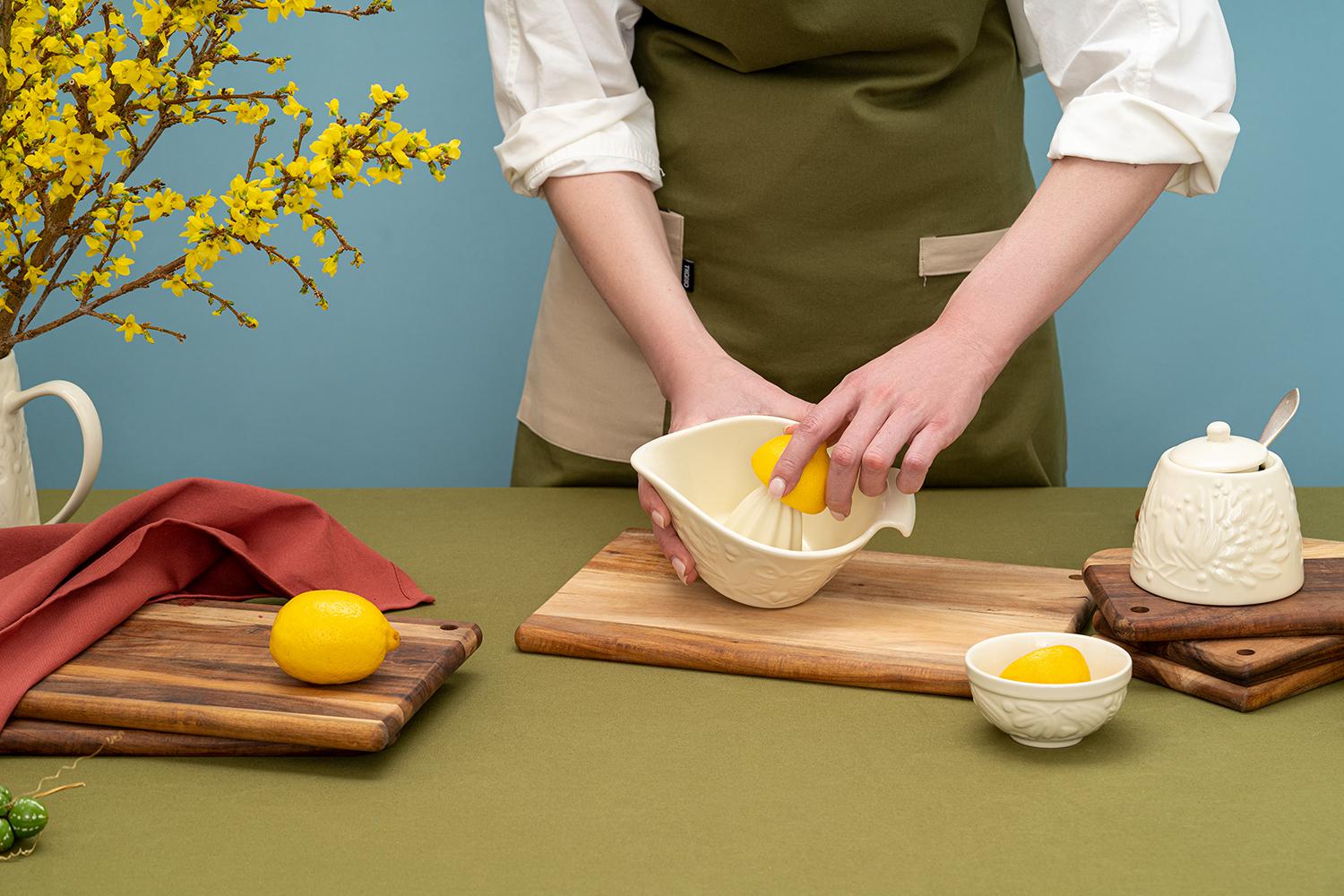 Соковыжималка для цитрусовых из коллекции Birds of Paradise – качественная посуда из экологичной каменной керамики, которая облегчает процесс готовки и делает интерьер любой кухни более уютным. Отличительной особенностью серии является объемный узор природной тематики, добавляющий дизайну элегантные нотки. Благодаря высокой прочности и устойчивости материала к износу изделие не теряет привлекательный внешний вид на протяжении всего срока службы. Покрытие глазурью облегчает уход, обеспечивает декоративность и дополнительную защиту от внешних воздействий. Соковыжималка имеет широкую чашу со специальным “носиком” для аккуратного переливания сока и ручкой для удобного захвата. Она проста в применении и легко очищается после использования. Наши продукты прошли испытания на отсутствие в составе свинца и кадмия в соответствии со стандартными тестами FDA. Коллекция Birds of Paradise разработана английской художницей Karen Wall, основным направлением творчества которой является создание иллюстраций для посуды, домашнего текстиля и детских книг. В основе дизайна – природные мотивы, вдохновленные традиционным фольклором Великобритании 19-го века. Атмосфера волшебного леса с райскими птицами погружает в мир добрых грез и фантазий, где всегда тепло, уютно и есть место чудесам. Материал: каменная керамика. Размеры: 19,2х13,4х8,8 см. Объем: 410 мл. Цвет: кремовый. Можно мыть в посудомоечной машине.