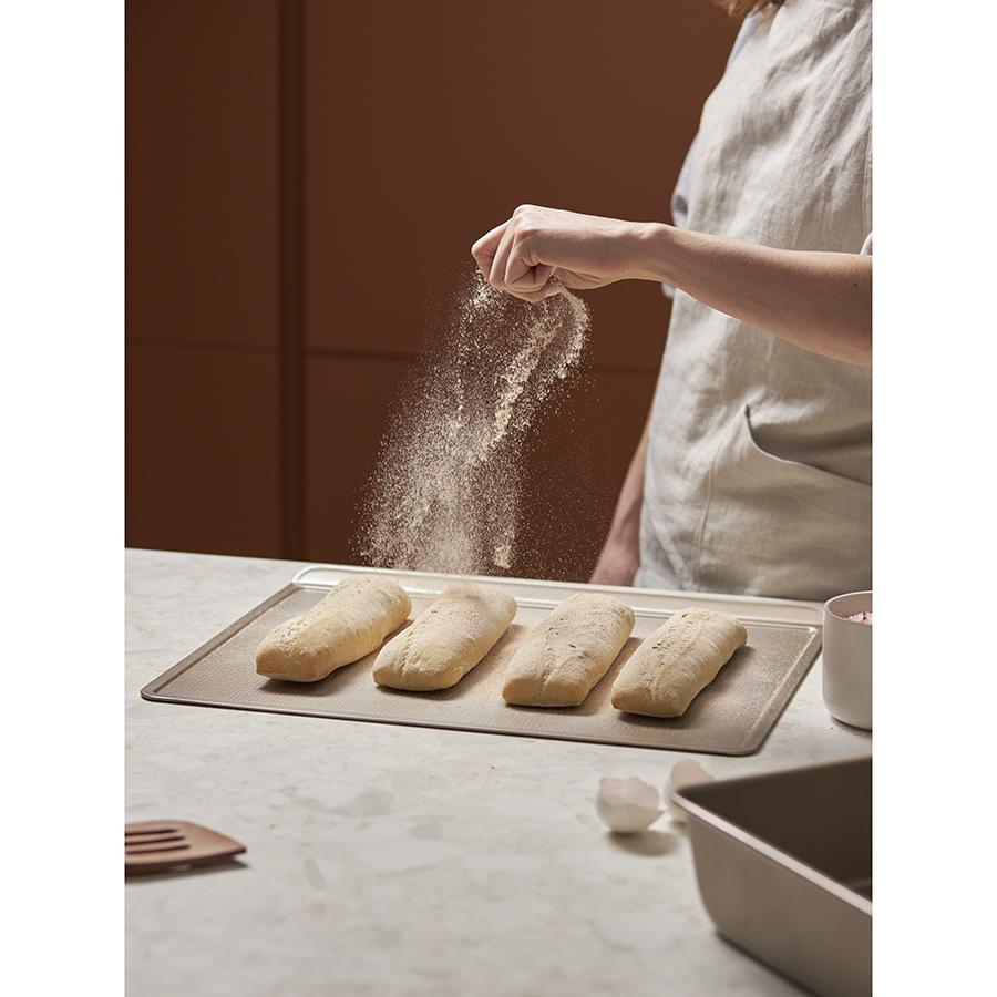 Противень Bake Masters объединяет высококачественные материалы и удобство использования, позволяя получать истинное удовольствие от приготовления блюд в духовке. С таким надежным помощником любой кулинарный эксперимент превращается в настоящее творчество. Противень идеально подойдет для приготовление пиццы, тонкой выпечки, блюд из мяса, рыбы, овощей. Особенности и преимущества: - В противне из углеродистой стали тепло распределяется равномерно по всей поверхности, обеспечивая качественное пропекание блюд. - Материал обладает высокой прочностью, устойчив к повреждениям, износу, выдерживает нагревание до 230 градусов. - Посуда для запекания имеет увеличенную толщину стенок 0,8 мм, что делает ее практичной, удобной в эксплуатации и долговечной. - Усиленное двухслойное покрытие на основе силикона PPG Eclipse отличается превосходными антипригарными свойствами, не стирается, не трескается, рассчитано на интенсивное использование, легко моется и не содержит PFAS. Материал: углеродистая сталь. Размеры: 45,8х35,5х1,8 см. Противень рекомендуется мыть вручную – так он прослужит намного дольше, сохранив свои первоначальные характеристики. Запрещается использование абразивных материалов и агрессивной бытовой химии.