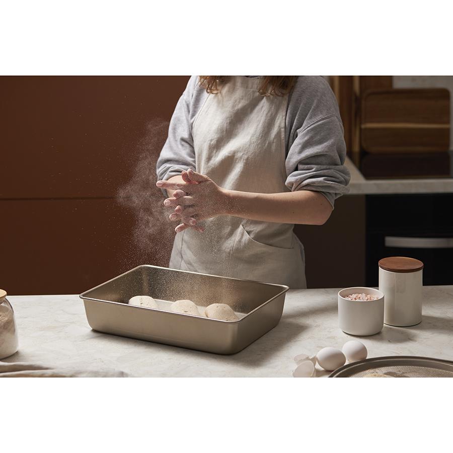 Форма для выпечки Bake Masters объединяет высококачественные материалы и удобство использования, позволяя получать истинное удовольствие от приготовления различных блюд в духовке. С таким надежным помощником любой кулинарный эксперимент превращается в настоящее творчество. Особенности и преимущества: - В форме из углеродистой стали тепло распределяется равномерно по всей поверхности, обеспечивая качественное пропекание блюд. - Материал обладает высокой прочностью, устойчив к повреждениям, износу, выдерживает нагревание до 230 градусов. - Посуда для запекания имеет увеличенную толщину стенок 0,8 мм, что делает ее практичной, удобной в эксплуатации и долговечной. - Усиленное двухслойное покрытие на основе силикона PPG Eclipse отличается превосходными антипригарными свойствами, не стирается, не трескается, рассчитано на интенсивное использование, легко моется и не содержит PFAS. Материал: углеродистая сталь. Размеры: 39,8х28,8 см. Форму рекомендуется мыть вручную – так она прослужит намного дольше, сохранив свои первоначальные характеристики. Запрещается использование абразивных материалов и агрессивной бытовой химии.