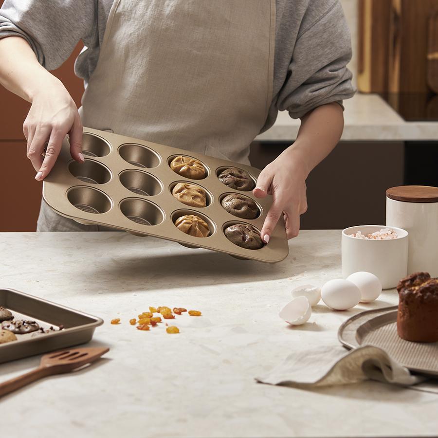 Форма для кексов и пирожных Bake Masters объединяет высококачественные материалы и удобство использования, позволяя получать истинное удовольствие от приготовления десертов в духовке. С таким надежным помощником любой кулинарный эксперимент превращается в настоящее творчество. Особенности и преимущества: - В форме из углеродистой стали тепло распределяется равномерно по всей поверхности, обеспечивая качественное пропекание блюд. - Материал обладает высокой прочностью, устойчив к повреждениям, износу, выдерживает нагревание до 230 градусов. - Посуда для запекания имеет увеличенную толщину стенок 0,8 мм, что делает ее практичной, удобной в эксплуатации и долговечной. - Усиленное двухслойное покрытие на основе силикона PPG Eclipse отличается превосходными антипригарными свойствами, не стирается, не трескается, рассчитано на интенсивное использование, легко моется и не содержит PFAS. Материал: углеродистая сталь. Размеры: 40х28х3 см. Размеры одной ячейки: 6,4х3 см. Форму рекомендуется мыть вручную – так она прослужит намного дольше, сохранив свои первоначальные характеристики. Запрещается использование абразивных материалов и агрессивной бытовой химии.