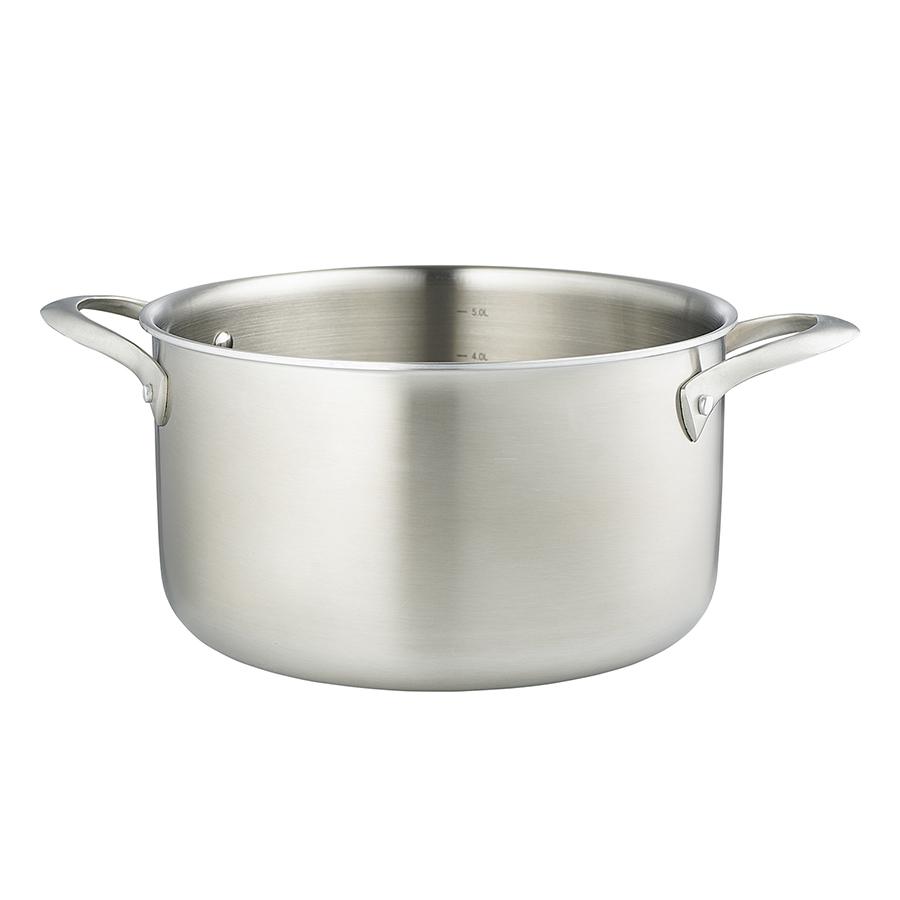 Кастрюля с крышкой 3Ply Etalon, изготовленная по инновационной технологии TRI-PLY, поможет получить настоящее удовольствие от готовки и позволит почувствовать себя настоящим шеф-поваром на собственной кухне. Особенности и преимущества: - Кастрюля изготовлена из высококачественной нержавеющей стали 18/10, благодаря чему долго служит, сохраняя первозданный вид. - Дно и стенки из нержавеющей стали толщиной 2,5 мм с внутренним слоем из алюминия обеспечивают равномерное распределение тепла. - Посуда с толстым дном и стенками менее подвержена вмятинам и повреждениям. - Устойчивые к нагреву ручки гарантируют безопасное и удобное использование. - Мерная шкала, нанесенная на внутреннюю поверхность посуды, позволяет быстро и легко отмерять нужное количество жидкости. - Крышка выполнена из ударопрочного закаленного стекла и оснащена отверстием для вывода пара. - Кастрюля подходит для всех видов плит, включая индукционные, газовые и электрические. - Благодаря матовой поверхности посуда 3Ply Etalon выглядит невероятно стильно, что делает ее украшением любой современной кухни. Посуда из нержавеющей стали 3Ply Etalon изготовлена по инновационной технологии TRI-PLY – ее стенки и дно имеют два слоя стали, между которыми предусмотрен слой алюминия. Эта особенность обеспечивает изделиям превосходную теплопроводность, практичность и долговечность. Коллекция идеально подходит для любых типов плит и впечатляет трендовым дизайном – сочетание современных форм и матовой поверхности делает ее настоящим украшением любой кухни. Материал: нержавеющая сталь, алюминий, стекло. Диаметр по краю внешний: 25,7 см. Диаметр по краю внутренний: 24 см. Длина: 35,7 см. Высота: 13,7 см. Диаметр дна снаружи: 22 см. Диаметр дна изнутри: 22 см. Высота стенки изнутри: 13,4 см. Объем: 6 л. Можно мыть вручную и в посудомоечной машине. Перед первым использованием необходимо промыть кастрюлю в теплой мыльной воде при помощи мягкой губки. В дальнейшем рекомендуется очищать посуду сразу после приготовления, как только она остынет. Запрещается использование абразивов и агрессивной бытовой химии.