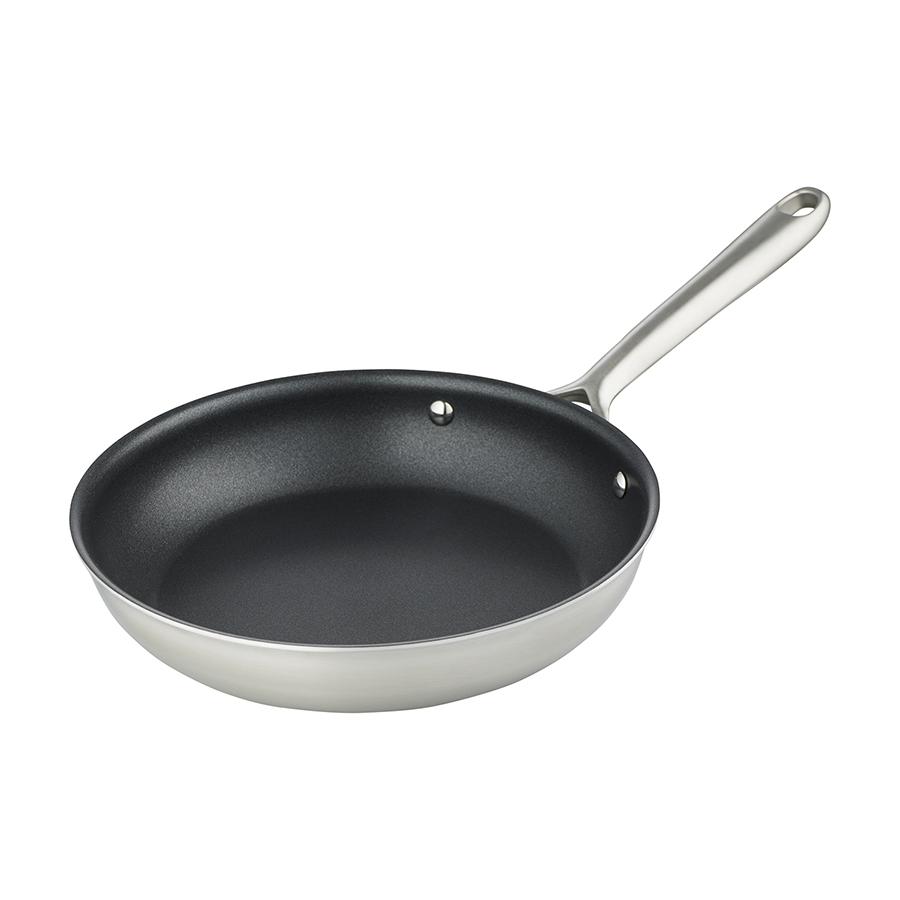 Сковорода 3Ply Etalon, изготовленная по инновационной технологии TRI-PLY, с антипригарным покрытием Teflon Platinum поможет получить настоящее удовольствие от готовки и позволит почувствовать себя настоящим шеф-поваром на собственной кухне. Особенности и преимущества: - Сковорода изготовлена из высококачественной нержавеющей стали 18/10, благодаря чему долго служит, сохраняя первозданный вид. - Дно и стенки из нержавеющей стали толщиной 2,5 мм с внутренним слоем из алюминия обеспечивают равномерное распределение тепла. - Посуда с толстым дном и стенками менее подвержена вмятинам и повреждениям. - Трехслойное покрытие Теflon Platinum не боится царапин, предотвращает прилипание продуктов, не выделяет вредных веществ и легко моется. - Устойчивая к нагреву ручка гарантирует безопасное и удобное использование. - Сковорода подходит для всех видов плит, включая индукционные, газовые и электрические. - Благодаря матовой поверхности посуда 3Ply Etalon выглядит невероятно стильно, что делает ее украшением любой современной кухни. Посуда из нержавеющей стали 3Ply Etalon изготовлена по инновационной технологии TRI-PLY – ее стенки и дно имеют два слоя стали, между которыми предусмотрен слой алюминия. Эта особенность обеспечивает изделиям превосходную теплопроводность, практичность и долговечность. Коллекция идеально подходит для любых типов плит и впечатляет трендовым дизайном – сочетание современных форм и матовой поверхности делает ее настоящим украшением любой кухни. Материал: нержавеющая сталь, алюминий, антипригарное покрытие Теflon Platinum. Диаметр по краю внешний: 25,3 см. Диаметр по краю внутренний: 24 см. Длина: 45,8 см. Высота: 5,5 см. Диаметр дна снаружи: 19,5 см. Диаметр дна изнутри: 19,5 см. Высота стенки изнутри: 5,5 см. Сковороду запрещено мыть в посудомоечной машине, только вручную. Перед первым использованием необходимо промыть сковороду в теплой мыльной воде при помощи мягкой губки. В дальнейшем рекомендуется очищать посуду сразу после приготовления, как только она остынет. Запрещается использование абразивов и агрессивной бытовой химии.