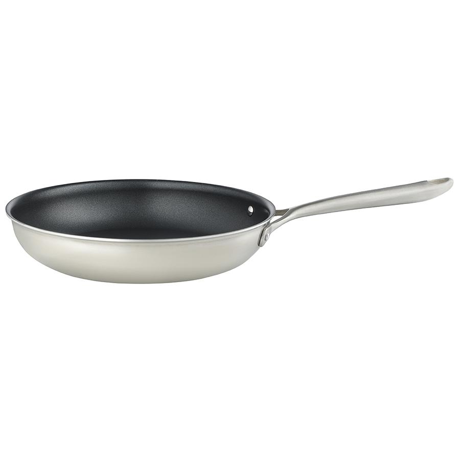Сковорода 3Ply Etalon, изготовленная по инновационной технологии TRI-PLY, с антипригарным покрытием Teflon Platinum поможет получить настоящее удовольствие от готовки и позволит почувствовать себя настоящим шеф-поваром на собственной кухне. Особенности и преимущества: - Сковорода изготовлена из высококачественной нержавеющей стали 18/10, благодаря чему долго служит, сохраняя первозданный вид. - Дно и стенки из нержавеющей стали толщиной 2,5 мм с внутренним слоем из алюминия обеспечивают равномерное распределение тепла. - Посуда с толстым дном и стенками менее подвержена вмятинам и повреждениям. - Трехслойное покрытие Теflon Platinum не боится царапин, предотвращает прилипание продуктов, не выделяет вредных веществ и легко моется. - Устойчивая к нагреву ручка гарантирует безопасное и удобное использование. - Сковорода подходит для всех видов плит, включая индукционные, газовые и электрические. - Благодаря матовой поверхности посуда 3Ply Etalon выглядит невероятно стильно, что делает ее украшением любой современной кухни. Посуда из нержавеющей стали 3Ply Etalon изготовлена по инновационной технологии TRI-PLY – ее стенки и дно имеют два слоя стали, между которыми предусмотрен слой алюминия. Эта особенность обеспечивает изделиям превосходную теплопроводность, практичность и долговечность. Коллекция идеально подходит для любых типов плит и впечатляет трендовым дизайном – сочетание современных форм и матовой поверхности делает ее настоящим украшением любой кухни. Материал: нержавеющая сталь, алюминий, антипригарное покрытие Теflon Platinum. Диаметр по краю внешний: 29,6 см. Диаметр по краю внутренний: 28 см. Длина: 49,7 см. Высота: 5,7 см. Диаметр дна снаружи: 22 см. Диаметр дна изнутри: 22 см. Объем: 2,5 л. Высота стенки изнутри: 5,7 см. Сковороду запрещено мыть в посудомоечной машине, только вручную. Перед первым использованием необходимо промыть сковороду в теплой мыльной воде при помощи мягкой губки. В дальнейшем рекомендуется очищать посуду сразу после приготовления, как только она остынет. Запрещается использование абразивов и агрессивной бытовой химии.
