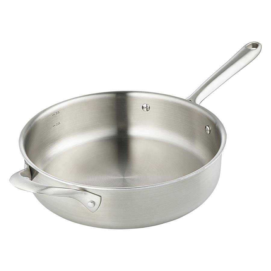 Сотейник с крышкой 3Ply Etalon, изготовленный по инновационной технологии TRI-PLY, поможет получить настоящее удовольствие от готовки и позволит почувствовать себя настоящим шеф-поваром на собственной кухне. Особенности и преимущества: - Сотейник изготовлен из высококачественной нержавеющей стали 18/10, благодаря чему долго служит, сохраняя первозданный вид. - Дно и стенки из нержавеющей стали толщиной 2,5 мм с внутренним слоем из алюминия обеспечивают равномерное распределение тепла. - Посуда с толстым дном и стенками менее подвержена вмятинам и повреждениям. - Устойчивая к нагреву ручка гарантирует безопасное и удобное использование. - Мерная шкала, нанесенная на внутреннюю поверхность посуды, позволяет быстро и легко отмерять нужное количество жидкости. - Крышка выполнена из ударопрочного закаленного стекла и оснащена отверстием для вывода пара. - Сотейник подходит для всех видов плит, включая индукционные, газовые и электрические. - Благодаря матовой поверхности посуда 3Ply Etalon выглядит невероятно стильно, что делает ее украшением любой современной кухни. Посуда из нержавеющей стали 3Ply Etalon изготовлена по инновационной технологии TRI-PLY – ее стенки и дно имеют два слоя стали, между которыми предусмотрен слой алюминия. Эта особенность обеспечивает изделиям превосходную теплопроводность, практичность и долговечность. Коллекция идеально подходит для любых типов плит и впечатляет трендовым дизайном – сочетание современных форм и матовой поверхности делает ее настоящим украшением любой кухни. Материал: нержавеющая сталь, алюминий, стекло. Диаметр по краю внешний: 27,7 см. Диаметр по краю внутренний: 26 см. Длина: 52,7 см. Высота: 7,3 см. Диаметр дна снаружи: 24 см. Диаметр дна изнутри: 24 см. Высота стенки изнутри: 7 см. Можно мыть вручную и в посудомоечной машине. Перед первым использованием необходимо промыть сотейник в теплой мыльной воде при помощи мягкой губки. В дальнейшем рекомендуется очищать посуду сразу после приготовления, как только она остынет. Запрещается использование абразивов и агрессивной бытовой химии.