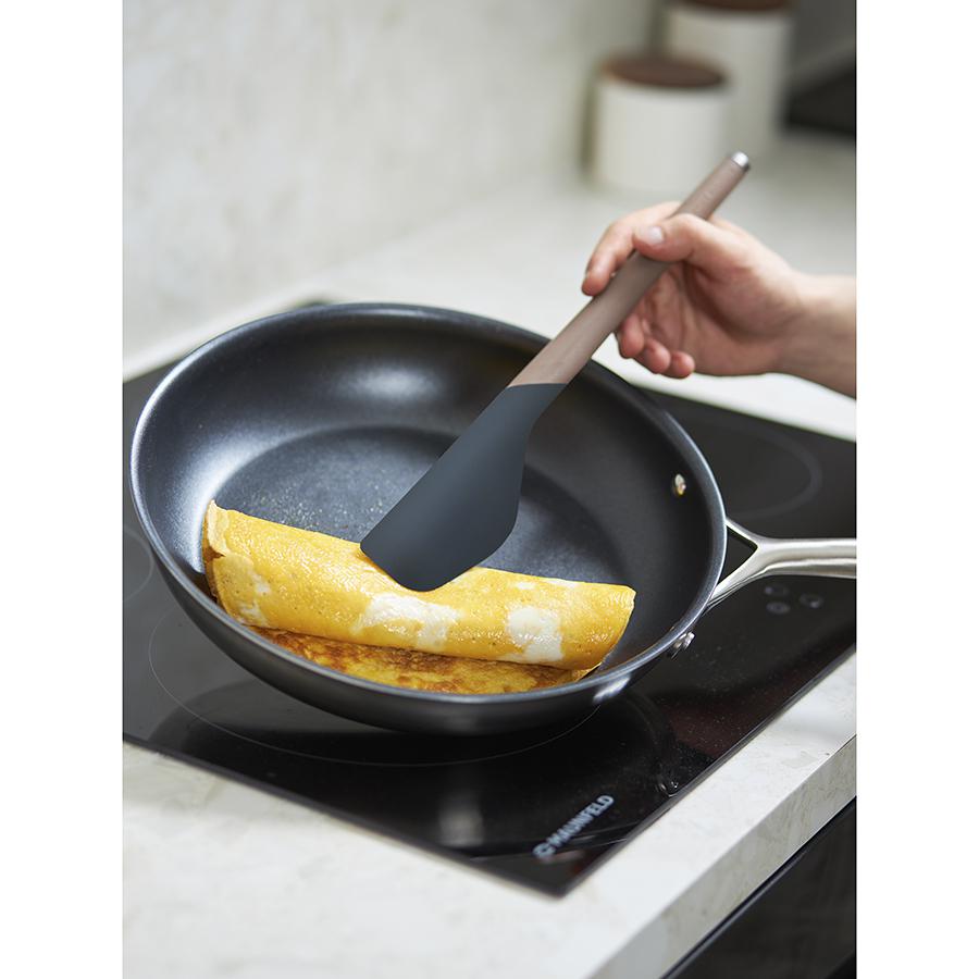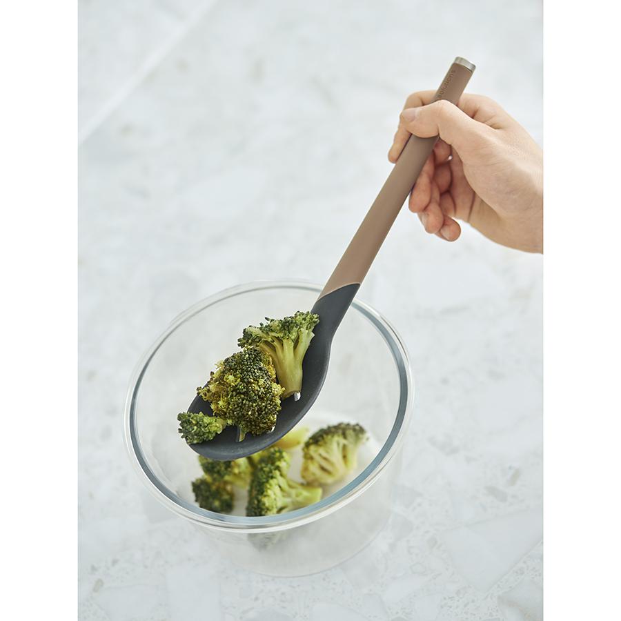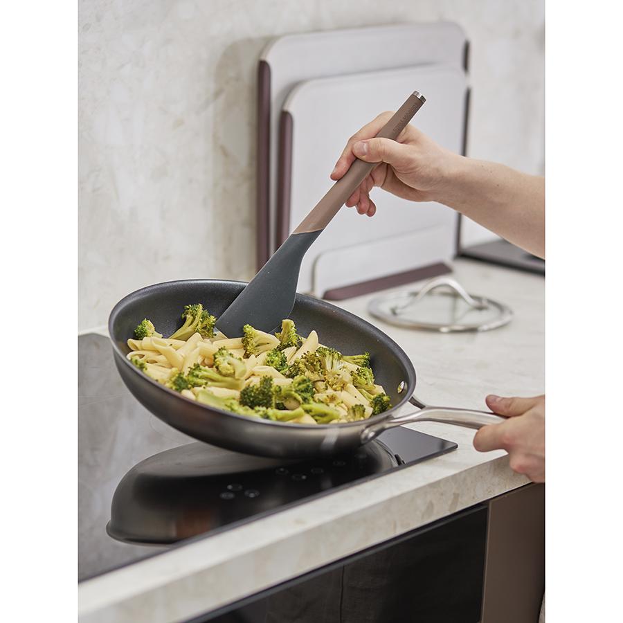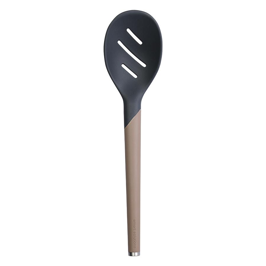Набор кухонных инструментов SmartChef от дизайнерского бренда Smart Solutions станет прекрасным дополнением любой современной кухни. Комплект включает половник, шумовку, лопатку для перемешивания и лопатку для переворачивания продуктов. Особенности и преимущества: - Сочетание нейлона и силикона создает идеальный баланс жесткости и гибкости, что делает кухонные аксессуары удобными в использовании. - Рабочие части инструментов выполнены из силикона, благодаря чему они не царапают посуду и идеально подходят для антипригарных покрытий. - Ручки с мягкой, нескользящей поверхностью софт-тач обеспечивают надежный захват и тактильный комфорт. - Лопатка для переворачивания имеет специальный изгиб и заостренный край для быстрого и легкого подхватывания продуктов. - Специальные отверстия не только позволяют стечь маслу, но и уменьшают площадь соприкосновения инструмента с раскаленной поверхностью сковороды. - Лопатка для смешивания имеет уникальную форму для тщательного перемешивания продуктов в емкостях любого размера. - Чаша половника оптимального объема 140 мл имеет специальную сдавленную форму с ободком для удобного зачерпывания и аккуратного наливания жидких продуктов. - Чаша расположена к ручке под углом 45 градусов, что позволяет защитить руки от горячего пара. - Шумовка специальной формы с плоскими краями позволяет легко захватывать и удерживать продукты. - Наличие специальных металлических наконечников дает возможность подвешивать инструменты на магнитный держатель для компактного хранения. Коллекция кухонных инструментов SmartChef объединяет в себе лаконичный дизайн, высокую функциональность и инновационные материалы, чтобы приготовление блюд доставляло удовольствие, а пространство кухни выглядело стильным и организованным. Поверхности софт-тач дарят приятные тактильные ощущения и улучшают эргономику продуктов, делая их более удобными в использовании. Главное – все предметы специально разработаны для использования с посудой, имеющей антипригарное покрытие. Материалы: нейлон, силикон, сталь. Размеры: половник – 9,5х9,5х31 см; шумовка – 7,4х6х31 см; лопатка с прорезями – 9х1,7х32 см, лопатка – 5,4х1,7х32 см. Количество в наборе: 4 шт. Инструменты можно мыть вручную и в посудомоечной машине.