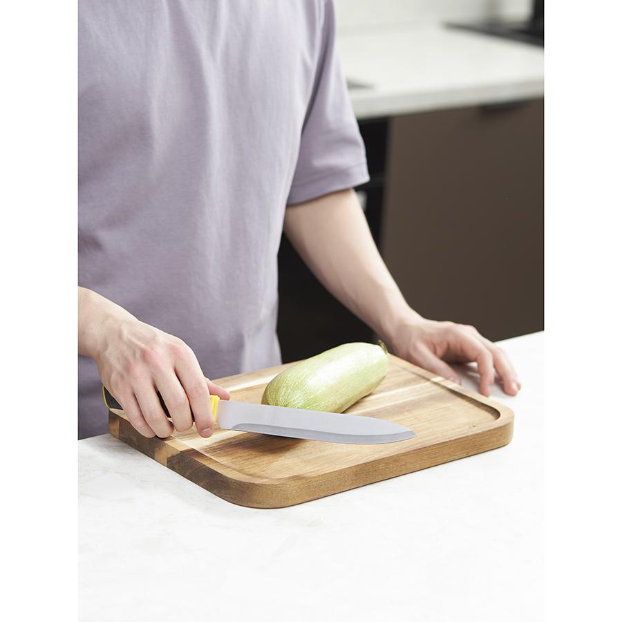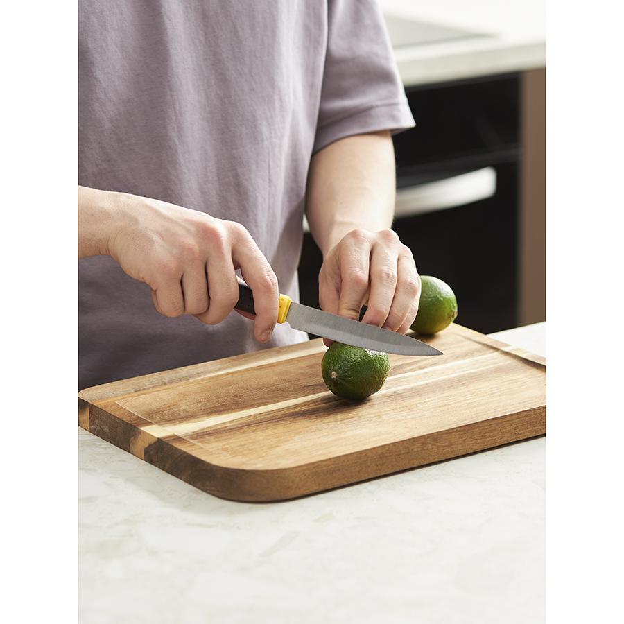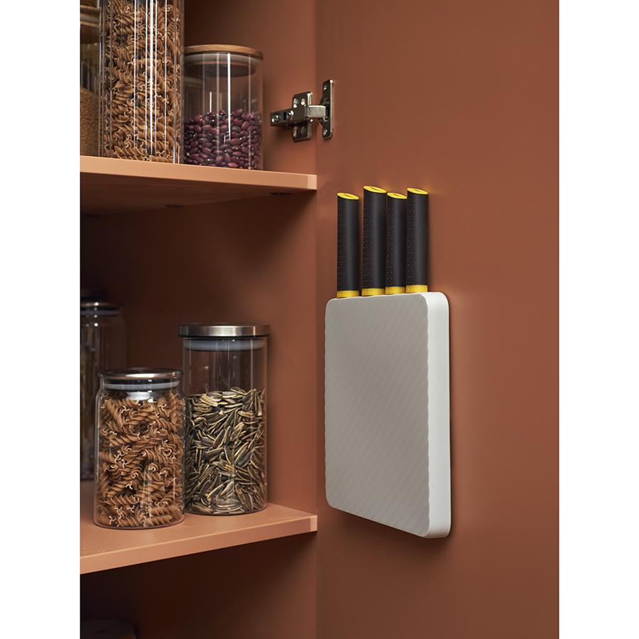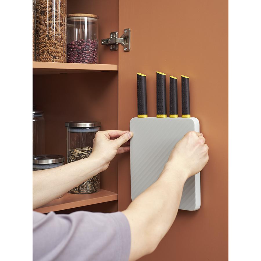 Набор Acros – универсальное решение для вашей кухни. В комплект входят четыре ножа для различных кулинарных задач и специальная подставка для их удобного и безопасного хранения. Особенности и преимущества: - Благодаря лезвиям из высококачественной нержавеющей стали 3CR14 ножи Acros являются износостойкими, практичными и долго остаются острыми. - Рукоятки кухонных инструментов имеют удобную форму и обеспечивают надежный хват, снижая риск порезов. - Блок из прочного полипропилена легко крепится при помощи самоклеящейся ленты, обеспечивая удобное, компактное и безопасное хранение. - За счет современного дизайна этот набор органично вписывается в интерьер любой кухни. - В комплекте представлены ножи: поварской, разделочный, универсальный и для чистки овощей. Материалы: подставка – полипропилен; рукоятки ножей – полипропилен, термопластичная резина; лезвия ножей – нержавеющая сталь 3CR14. Размеры блока: 23,3х20,5х1,8 см. Размеры ножей: поварской – 32х4,1х1,8 см; разделочный – 32,9х3,1х1,8 см; универсальный – 24х2,3х1,5 см; для очистки овощей – 20,8х2,2х1,5 см. Количество предметов в наборе: 5 шт. Ножи после использования очищать в теплой мыльной воде при помощи мягкой губки. Запрещается применение абразивных материалов и агрессивной бытовой химии.