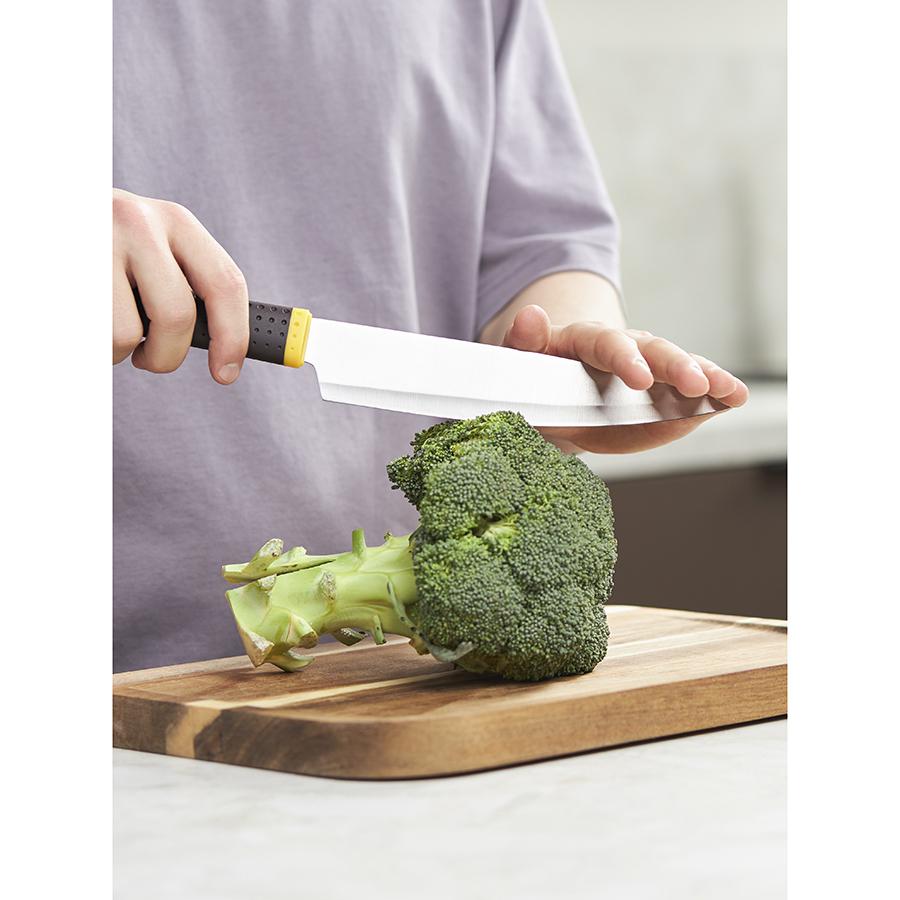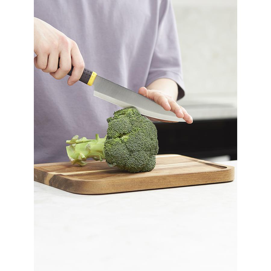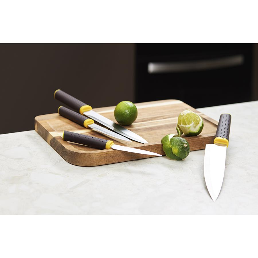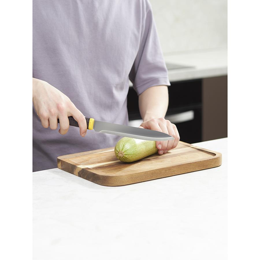 Набор Acros – универсальное решение для вашей кухни. В комплект входят четыре ножа для различных кулинарных задач и специальная подставка для их удобного и безопасного хранения. Особенности и преимущества: - Благодаря лезвиям из высококачественной нержавеющей стали 3CR14 ножи Acros являются износостойкими, практичными и долго остаются острыми. - Рукоятки кухонных инструментов имеют удобную форму и обеспечивают надежный хват, снижая риск порезов. - Блок из прочного полипропилена легко крепится при помощи самоклеящейся ленты, обеспечивая удобное, компактное и безопасное хранение. - За счет современного дизайна этот набор органично вписывается в интерьер любой кухни. - В комплекте представлены ножи: поварской, разделочный, универсальный и для чистки овощей. Материалы: подставка – полипропилен; рукоятки ножей – полипропилен, термопластичная резина; лезвия ножей – нержавеющая сталь 3CR14. Размеры блока: 23,3х20,5х1,8 см. Размеры ножей: поварской – 32х4,1х1,8 см; разделочный – 32,9х3,1х1,8 см; универсальный – 24х2,3х1,5 см; для очистки овощей – 20,8х2,2х1,5 см. Количество предметов в наборе: 5 шт. Ножи после использования очищать в теплой мыльной воде при помощи мягкой губки. Запрещается применение абразивных материалов и агрессивной бытовой химии.