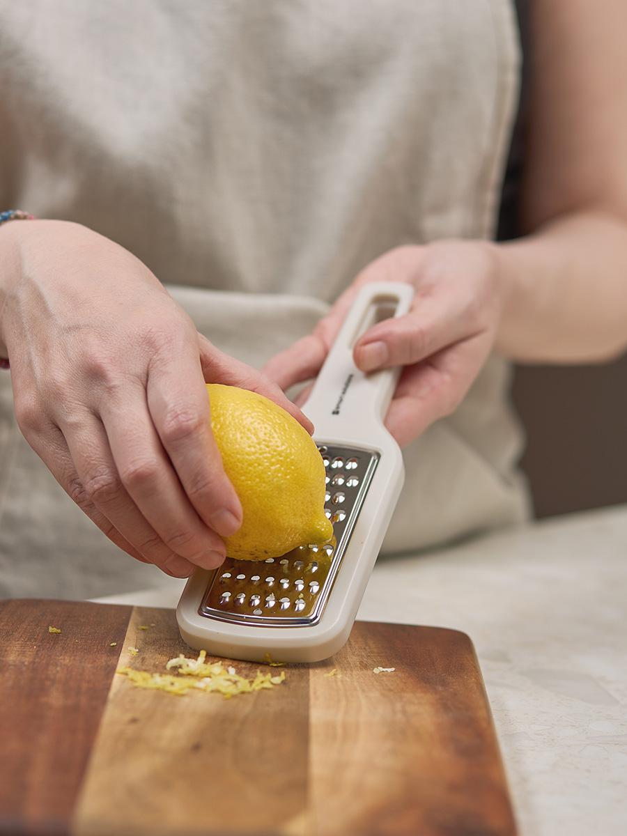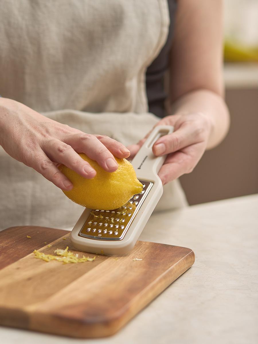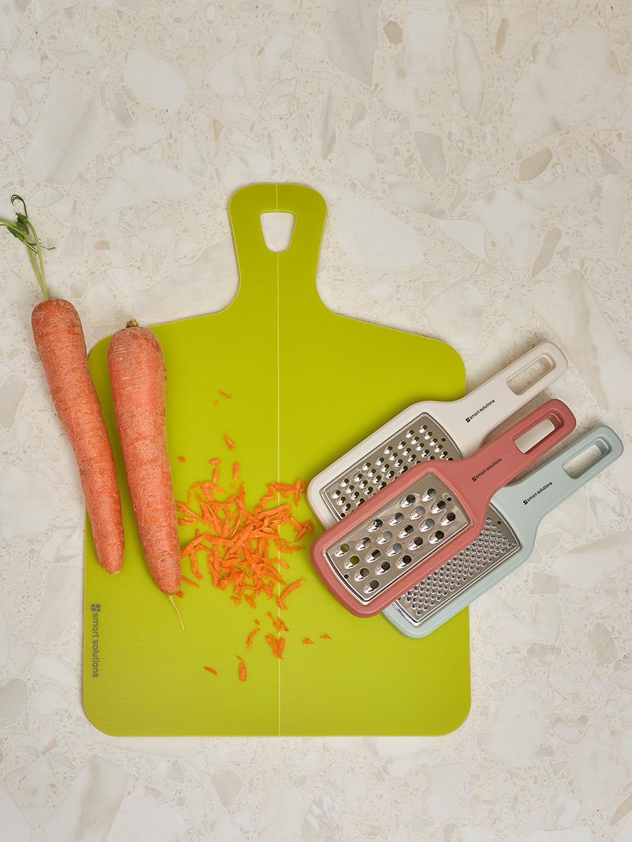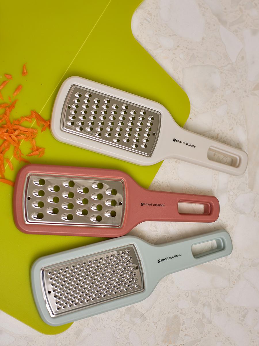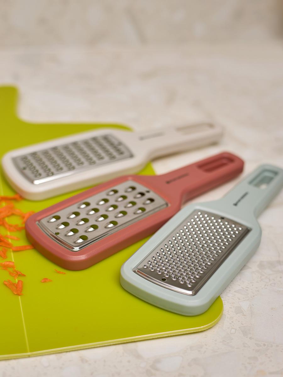 Набор Lear включает три терки: с крупными, мелкими отверстиями и лезвием для получения пюре. Терка с крупными отверстиями идеально подходит для овощей, фруктов и сыра, с мелкими – для сыров твердых пород, овощей. Последняя позволяет получить перетертые в пюре овощи и фрукты. Особенности и преимущества: - Изделия выполнены в едином стиле и эффектно дополняют друг друга за счет оригинального цветового сочетания. - Кухонные инструменты оснащены длинной ручкой для удобного хвата и безопасного использования. - Небольшие размеры и наличие специального отверстия для подвешивания на стену обеспечивают компактное хранение. - Рабочие поверхности из нержавеющей стали устойчивы к повреждениям, коррозии и износу. Материалы: полистирол, нержавеющая сталь. Размеры терок: 16х8х1 см. Количество предметов в наборе: 3 шт. Можно мыть вручную и в посудомоечной машине.