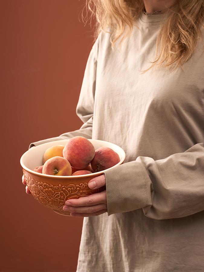 Миска English Gardens – выбор настоящих эстетов и возможность привнести в интерьер кухни частичку природной элегантности. Она идеально подойдет для замешивания теста, смешивания ингредиентов во время приготовления блюд, а также для складывания мытых овощей и фруктов и подачи их к столу. Особенности и преимущества: - Миска из прочной каменной керамики устойчива к растрескиванию и появлению сколов. - Глазурь и декор не тускнеют со временем, сохраняя первоначальный цвет и блеск. - Продукт прошел испытание на отсутствие в составе свинца и кадмия в соответствии со стандартными тестами FDA. - Коллекция English Gardens позволяет легко экспериментировать с цветами, текстурами и стилями, создавая красивые композиции и особую атмосферу. Коллекция English Gardens – посуда для сервировки и приготовления в английском стиле. Ее создала международная творческая команда: российские дизайнеры работали над формами и подбирали оттенки, а европейские иллюстраторы создавали цветочные паттерны. Коллекция состоит из двух частей. Она включает посуду для приготовления – разноцветные миски, салатники и предметы сервировки из каменной керамики, а также предметы сервировки из фарфора в нейтральном молочно-белом оттенке. Материал: каменная керамика. Объем: 2 л. Размеры: 20,3х20,3х10,6 см. Цвет: медовый. Можно мыть в посудомоечной машине в деликатном режиме с использованием мягких моющих средств.