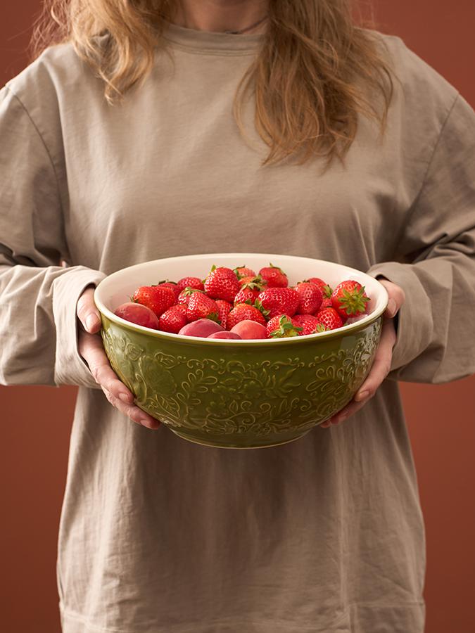 Миска English Gardens – выбор настоящих эстетов и возможность привнести в интерьер кухни частичку природной элегантности. Она идеально подойдет для замешивания теста, смешивания ингредиентов во время приготовления блюд, а также для складывания мытых овощей и фруктов и подачи их к столу. Особенности и преимущества: - Миска из прочной каменной керамики устойчива к растрескиванию и появлению сколов. - Глазурь и декор не тускнеют со временем, сохраняя первоначальный цвет и блеск. - Продукт прошел испытание на отсутствие в составе свинца и кадмия в соответствии со стандартными тестами FDA. - Коллекция English Gardens позволяет легко экспериментировать с цветами, текстурами и стилями, создавая красивые композиции и особую атмосферу. Коллекция English Gardens – посуда для сервировки и приготовления в английском стиле. Ее создала международная творческая команда: российские дизайнеры работали над формами и подбирали оттенки, а европейские иллюстраторы создавали цветочные паттерны. Коллекция состоит из двух частей. Она включает посуду для приготовления – разноцветные миски, салатники и предметы сервировки из каменной керамики, а также предметы сервировки из фарфора в нейтральном молочно-белом оттенке. Материал: каменная керамика. Объем: 3 л. Размеры: 24,3х24,3х11,4 см. Цвет: травянисто-зеленый. Можно мыть в посудомоечной машине в деликатном режиме с использованием мягких моющих средств.