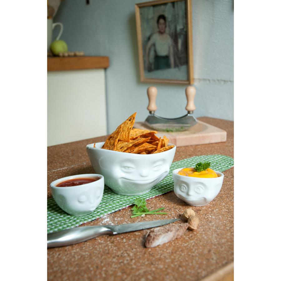 Оригинальная чаша с улыбающейся рожицей отлично подойдет для подачи салатов, закусок, первых блюд. Чаша выполнена из высококачественного фарфора. Объем: 500 мл. Поставляется в красивой подарочной коробке. Можно мыть в посудомоечной машине и ставить в микроволновую печь.