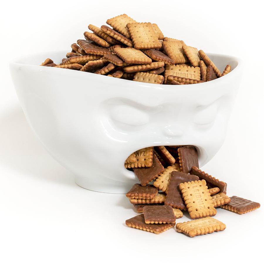 Оригинальная чаша с забавной рожицей отлично подойдет для подачи закусок и сладостей. Чаша выполнена из высококачественного фарфора. Объем: 1000 мл. Поставляется в красивой подарочной коробке. Можно мыть в посудомоечной машине и ставить в микроволновую печь.