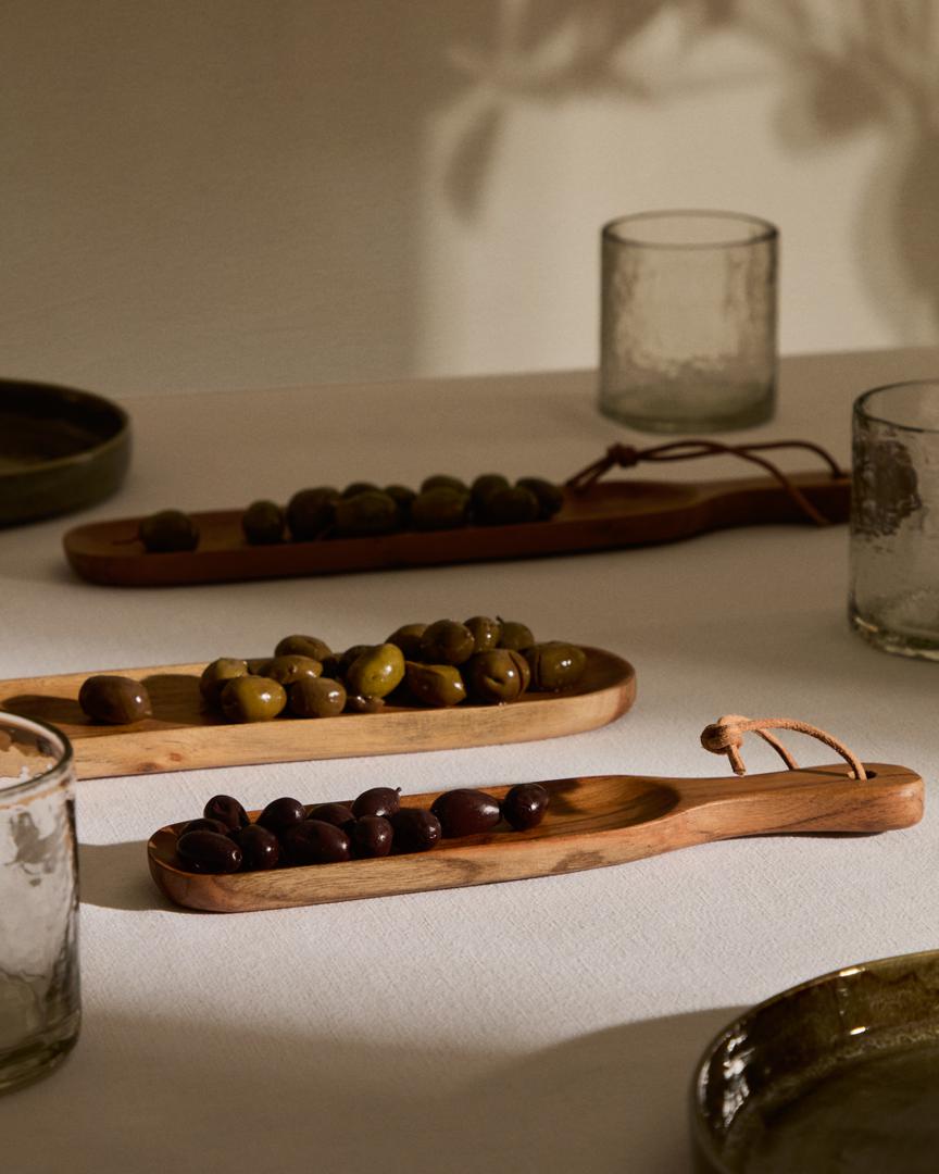 Набор Selvira от фабрики La Forma (ex Julia Grup) – три сервировочных доски из массива акации. Набор Selvira идеален для добавления естественного и дизайнерского прикосновения ко всем вашим застольям. Он изготовлен из древесины акации, поэтому каждое изделие будет эксклюзивным, со своей неповторимой текстурой и оттенками. Нарезка, роллы или суши – на Selvira любая еда будет выглядеть особенно и стильно. Выведите презентабельность вашей сервировки на новый уровень! Доски имеют вытянутую овальную форму. Они полностью изготовлены из древесины акации в натуральной отделке. Сверху полиуретановое покрытие, которое защищает массив от негативного воздействия влаги, солнца, облегчает чистку. В рукоятках есть отверстия и петли из джутового шнура, за которые доски можно подвесить. Чтобы продлить яркость и целостность древесины, доски не рекомендуется мыть в посудомоечной машине. Только деликатная ручная чистка без абразивов. А после мытья изделия следует сразу вытирать насухо. Размер: длина – 25 см, высота – 1,5 см, ширина – 5 см. Вес: 0,5 кг. Доски можно использовать на открытых территориях, но лучше под навесом