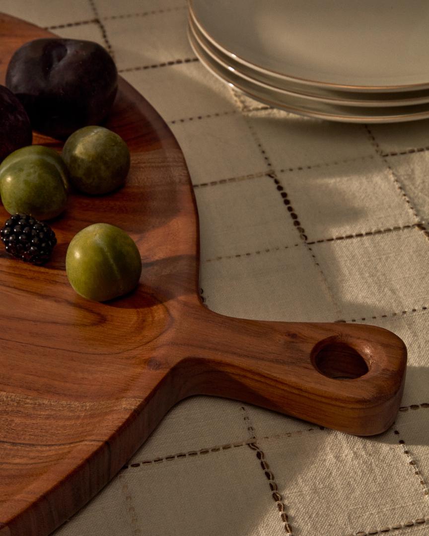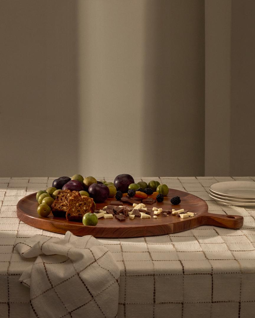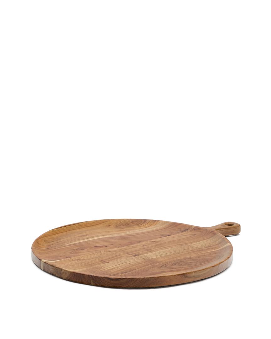Круглая сервировочная доска Eitene изготовлена из древесины акации, поэтому каждая доска имеет уникальные прожилки и оттенки, поэтому не существует двух одинаковых досок.