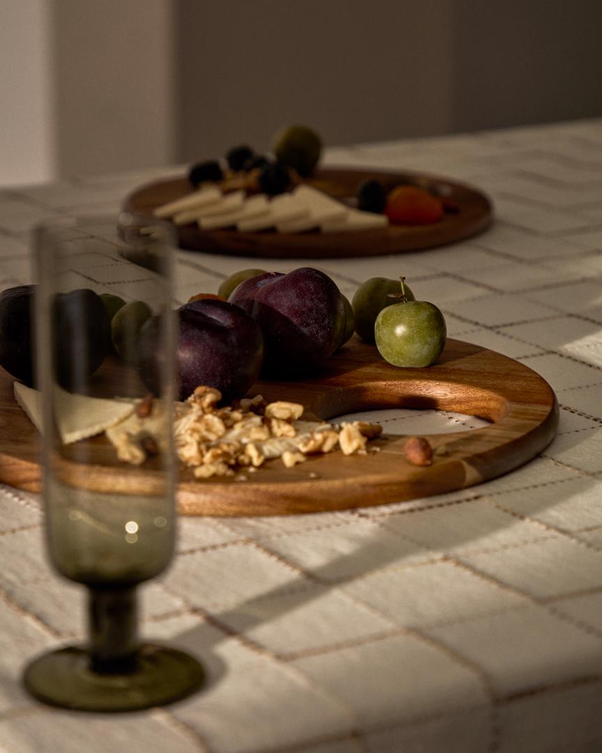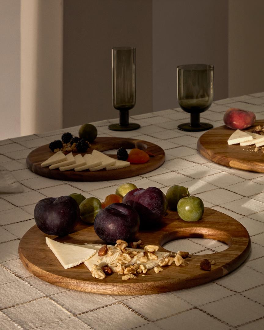 Для подачи ваших любимых рецептов мы представляем большую круглую доску Klot. Помимо наслаждения едой, вы также можете наслаждаться прекрасным украшением с помощью этой доски из акации.