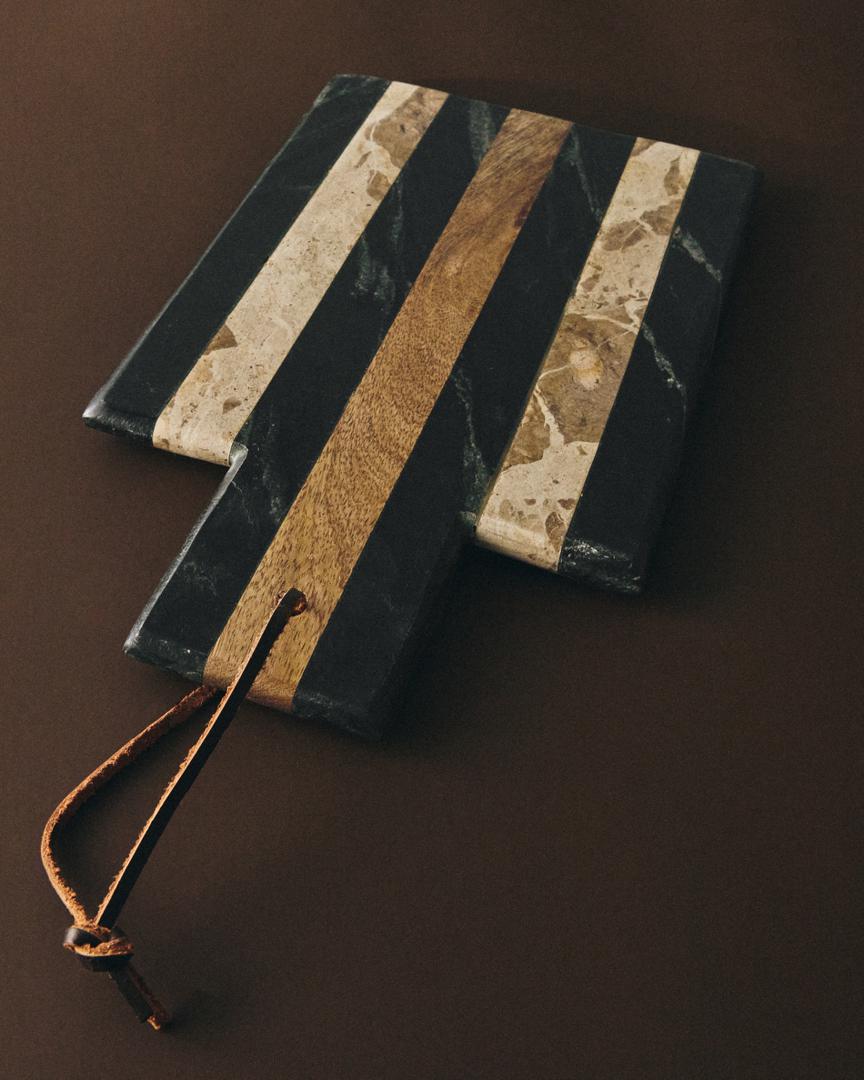 Доска La Forma (ех Julia Grup) Сервировочная доска Surne из черного и бежевого мрамора 30 x 18 см арт. 437034