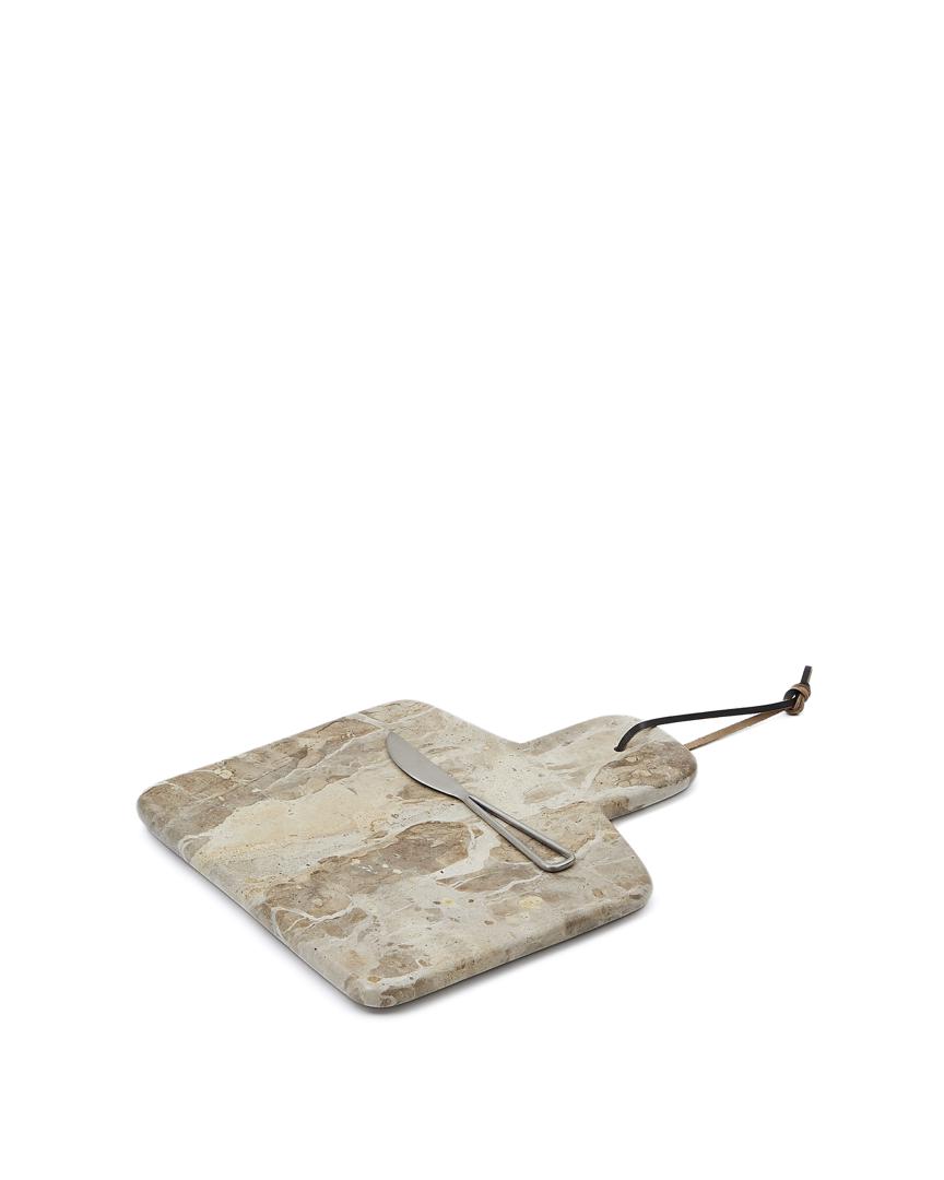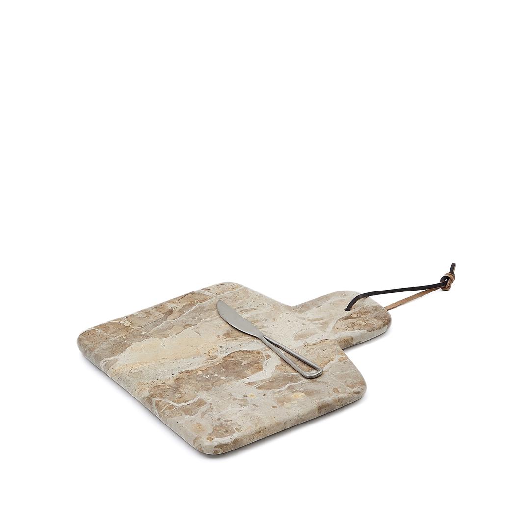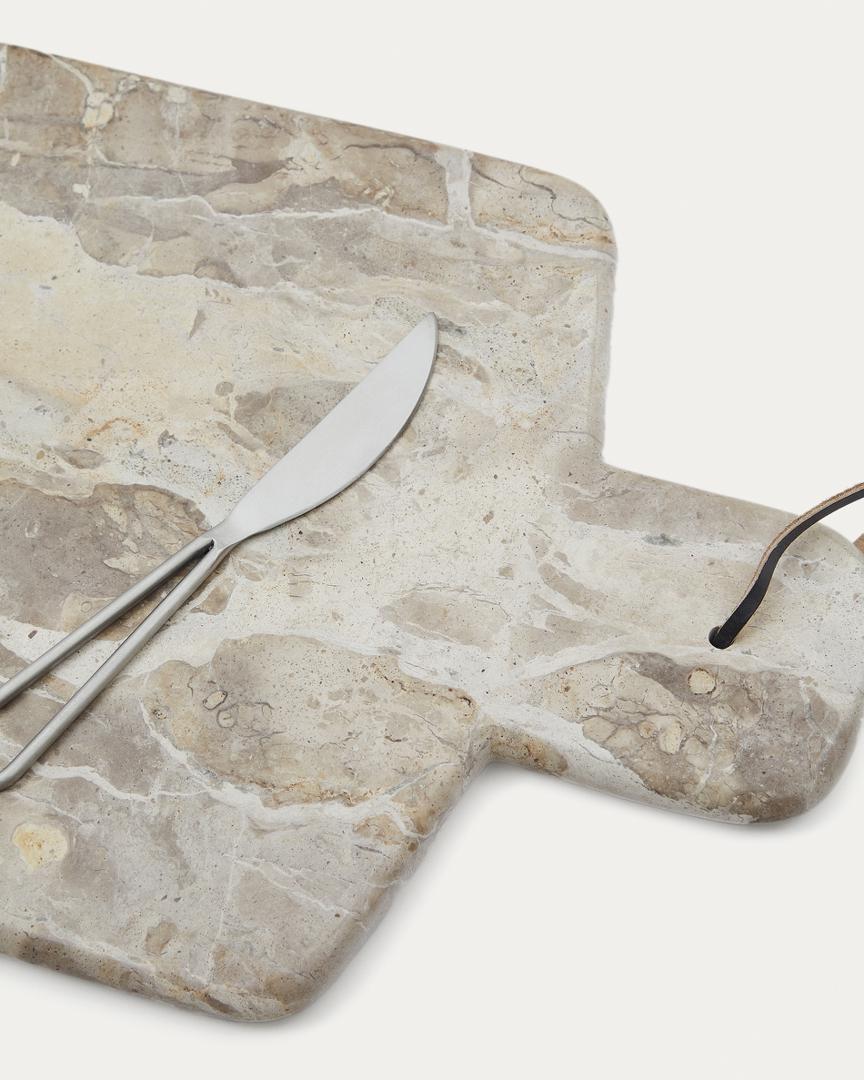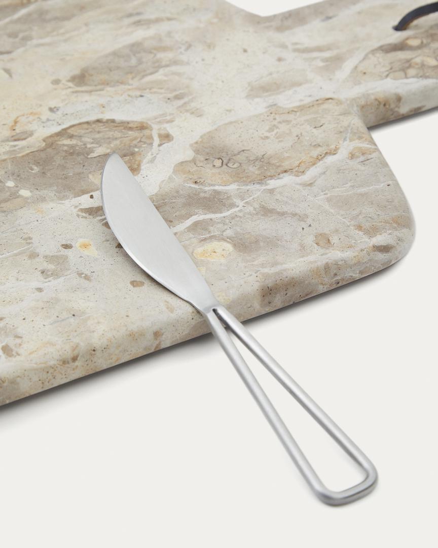 Доска La Forma (ех Julia Grup) Suka Большая сервировочная доска из бежевого мрамора и нож из металла арт. 191684
