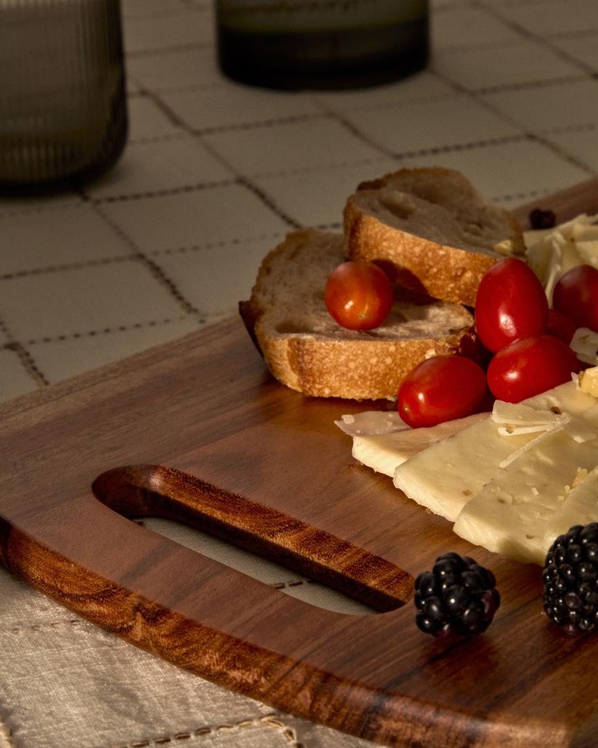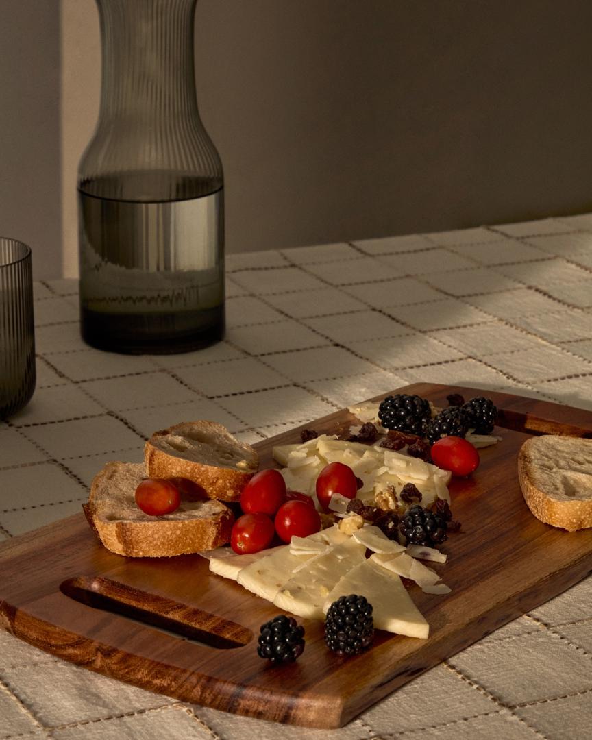 Сервировочная доска Zeun с органическими формами изготовлена из древесины акации, поэтому каждая доска имеет уникальные прожилки и оттенки, не существует двух одинаковых.
