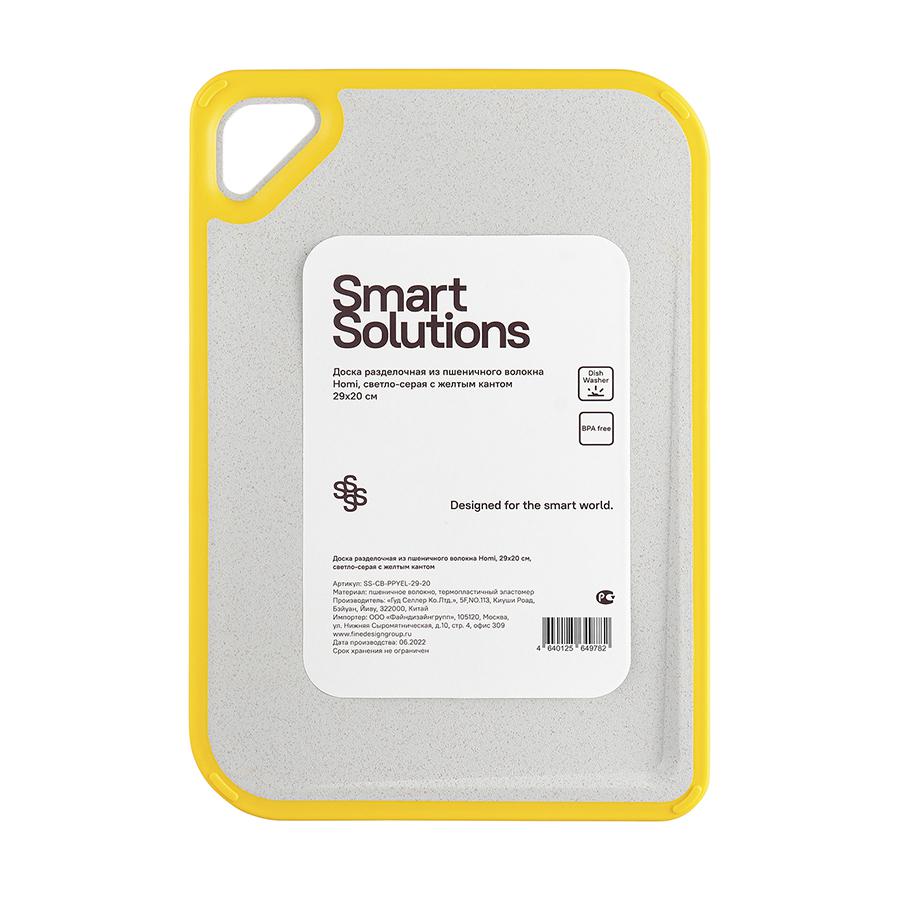 Доска ЯЯЯ Доска разделочная из пшеничного волокна homi, 29х20 см, светло-серая с желтым кантом арт. SS-CB-PPYEL-29-20