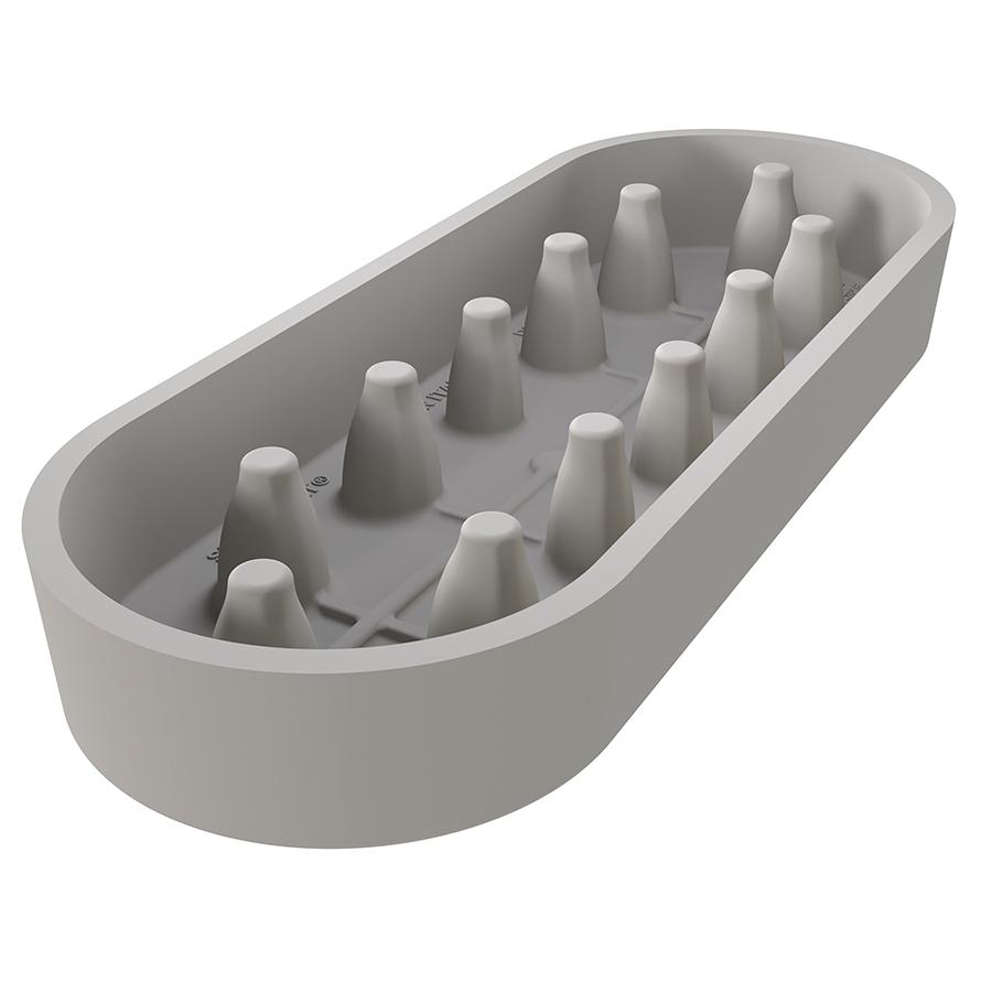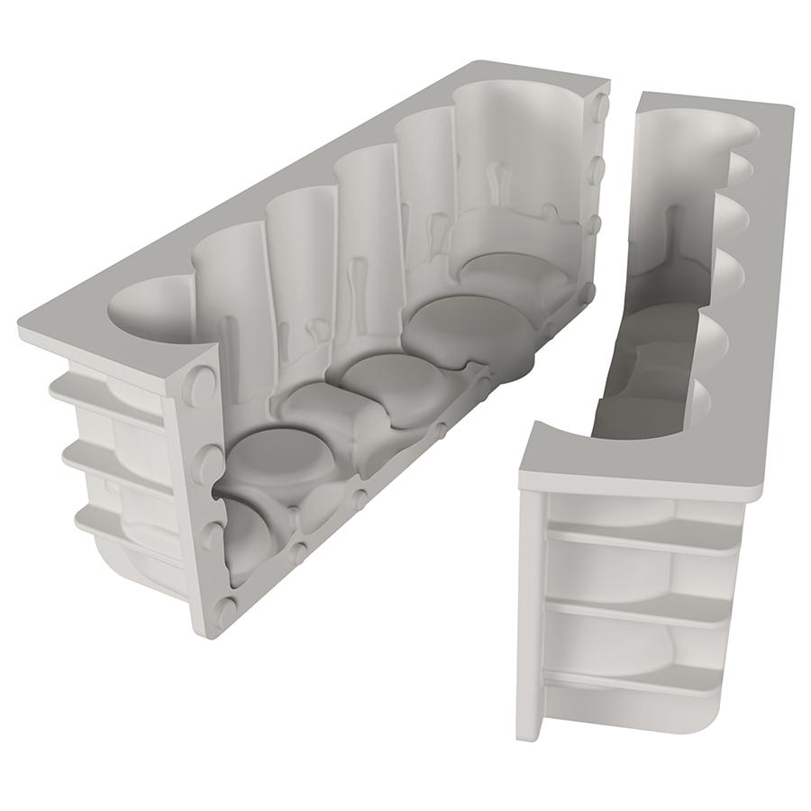 Силиконовая форма с пластиковой основой идеально подходит для приготовления эффектного десерта в виде свечей. Изделие выдерживает до 3000 использований. Основание из пластика придает десерту четкую форму. Силикон гибкий, прочный, устойчивый к перепадам температуры, не имеет запаха. Материалы не содержат вредный бисфенол-А и соответствуют европейским стандартам качества. Материал: силикон, пластик. Размеры: 21,9х8,9 см. Высота: 7,6 см. При чистке запрещается использование острых предметов. Допускается мытье в посудомоечной машине без применения агрессивных средств с осветляющим или ароматическим эффектом, которые могут привести к появлению на поверхности белого налета. Допускается хранение в холодильнике и морозильной камере.