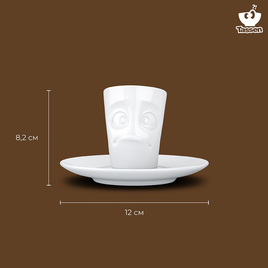 Кофейная пара из оригинальной чашки и блюдца отлично подойдет для подачи эспрессо. Чашка и блюдце выполнены из высококачественного фарфора. Поставляются в красивой подарочной коробке. Размер чашки: 7,2х6х8 см Диаметр блюдца: 12 см Можно мыть в посудомоечной машине и ставить в микроволновую печь.