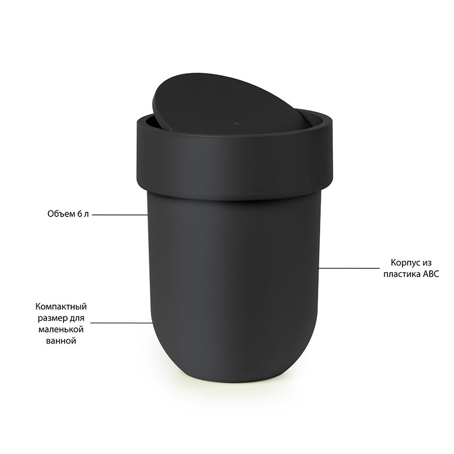 Корзина Umbra Корзина для мусора с крышкой touch, 6 л, черная арт. 023269-040