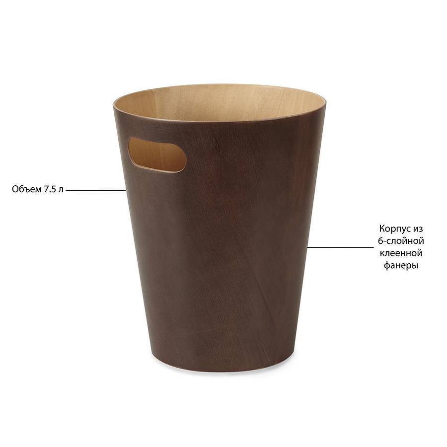 Корзина Umbra Корзина для мусора woodrow, 7,5 л, эспрессо арт. 082780-213