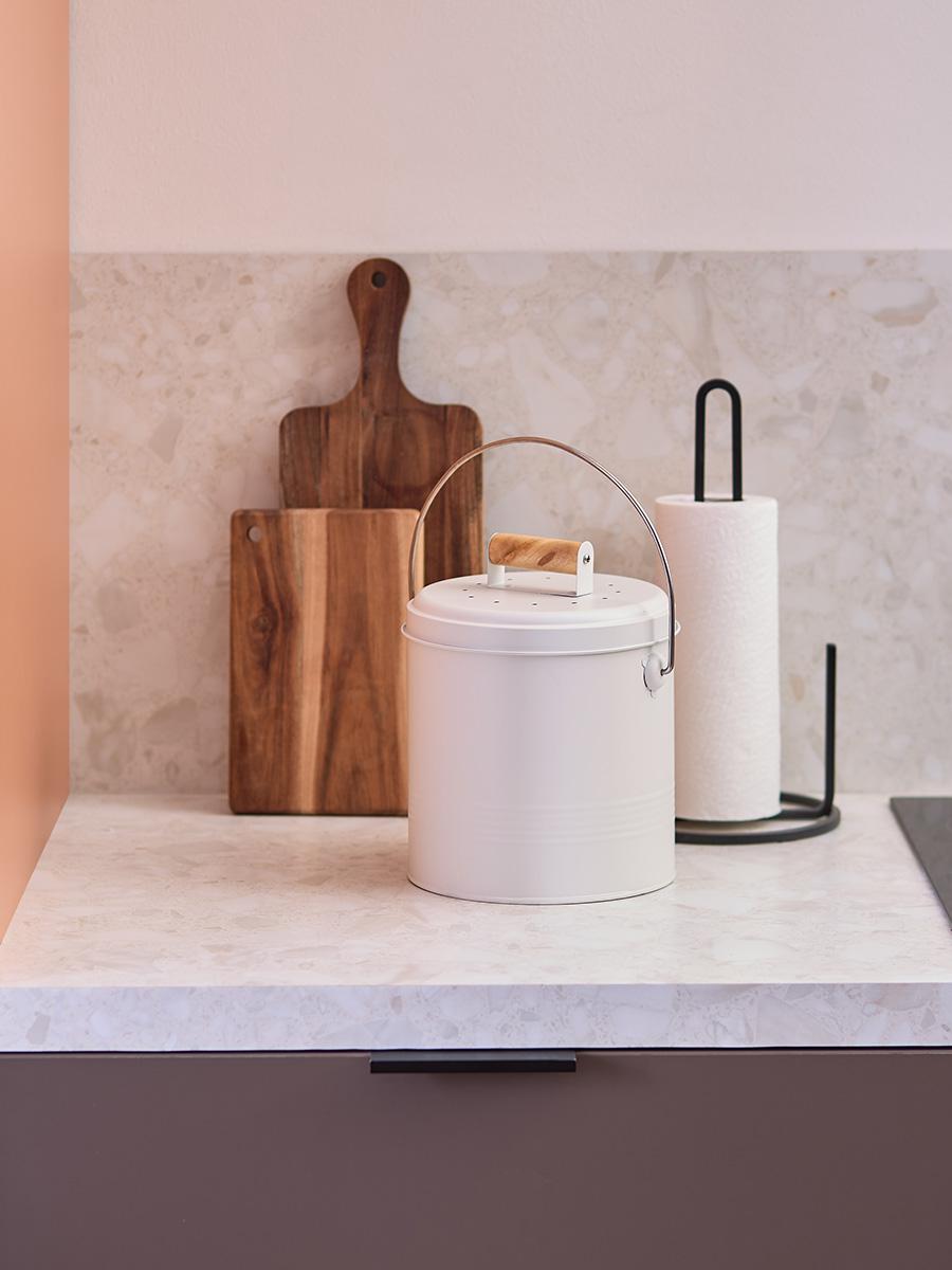 Контейнер для пищевых отходов Irmel – стильное и практичное решение для всех, кто стремится к более экологичному и осознанному образу жизни. С ним вы сможете легко и удобно сортировать мусор, сохраняя чистоту и порядок на кухне. Особенности и преимущества: - Использование в изготовлении углеродистой стали увеличенной толщины гарантирует контейнеру отличные эксплуатационные характеристики – устойчивость к повреждениям, износу и простой уход. - Порошковое покрытие защищает металлическую поверхность от коррозии и обеспечивает изделию дополнительную прочность. - В крышке предусмотрен специальный угольный фильтр, который поглощает неприятные запахи. - Внутренний пластиковый контейнер легко вынимается и очищается от загрязнений, что делает процесс утилизации отходов максимально удобным. Материалы: углеродистая сталь. Размеры: 18x18х23 см. Объем: 3,5 л. Цвет: молочный. Металлический контейнер можно очищать при помощи мягкого влажного материала, после чего сразу вытирать насухо. Контейнер из пластика можно мыть вручную в теплой мыльной воде. Запрещается использование абразивов и агрессивной бытовой химии.
