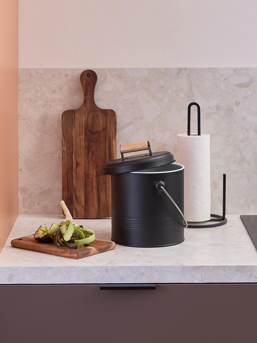 Контейнер для пищевых отходов Irmel – стильное и практичное решение для всех, кто стремится к более экологичному и осознанному образу жизни. С ним вы сможете легко и удобно сортировать мусор, сохраняя чистоту и порядок на кухне. Особенности и преимущества: - Использование в изготовлении углеродистой стали увеличенной толщины гарантирует контейнеру отличные эксплуатационные характеристики – устойчивость к повреждениям, износу и простой уход. - Порошковое покрытие защищает металлическую поверхность от коррозии и обеспечивает изделию дополнительную прочность. - В крышке предусмотрен специальный угольный фильтр, который поглощает неприятные запахи. - Внутренний пластиковый контейнер легко вынимается и очищается от загрязнений, что делает процесс утилизации отходов максимально удобным. Материалы: углеродистая сталь. Размеры: 18x18х23 см. Объем: 3,5 л. Цвет: графит. Металлический контейнер можно очищать при помощи мягкого влажного материала, после чего сразу вытирать насухо. Контейнер из пластика можно мыть вручную в теплой мыльной воде. Запрещается использование абразивов и агрессивной бытовой химии.
