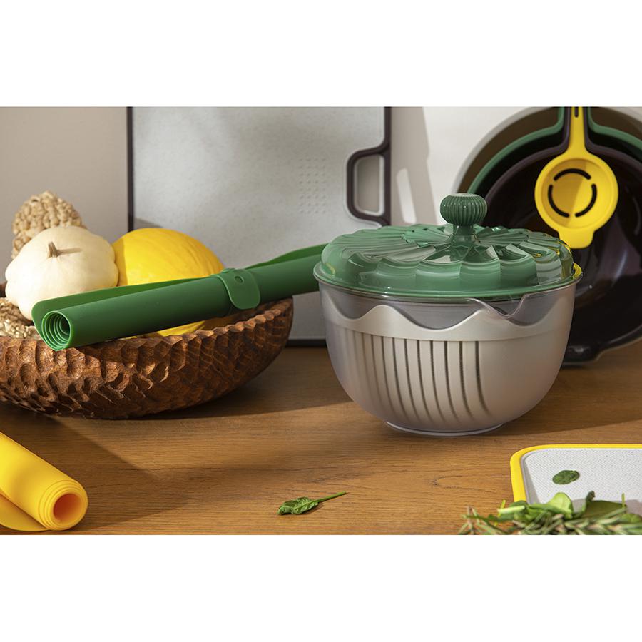 Коврик Foss защитит стол от загрязнений во время замешивания теста. Изделие выполнено из пищевого силикона – экологичного материала, который не имеет запаха и легко очищается после использования. Аксессуар не скользит по рабочей поверхности, а также позволяет не добавлять масло и муку для предотвращения прилипания густой массы. Наличие разметки помогает получить пласт теста идеальной формы и размера. Для компактного хранения коврик легко сворачивается и надежно закрепляется в собранном виде специальным фиксирующим ремешком. Материал: силикон. Размеры: 37,7х57,4 см. Цвет: зеленый. Можно использовать в микроволновой печи и мыть в посудомоечной машине.